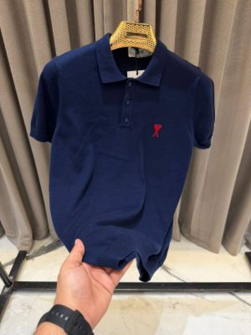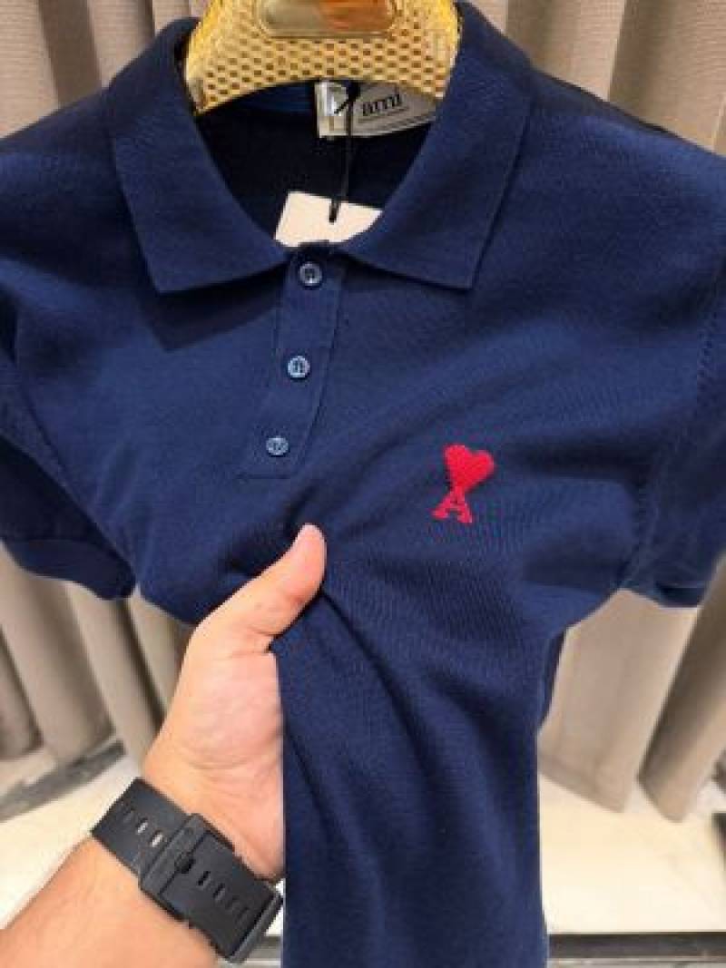 • Ami Paris Chest Logo Polo T-shirt Navy Blue