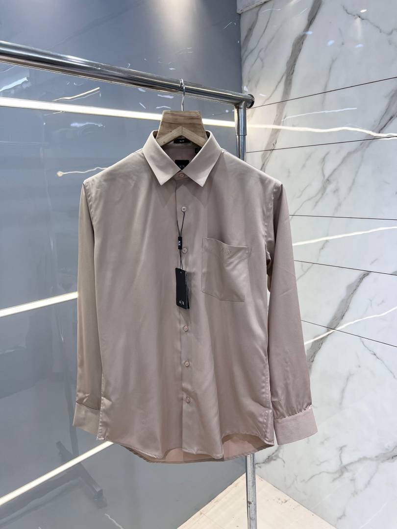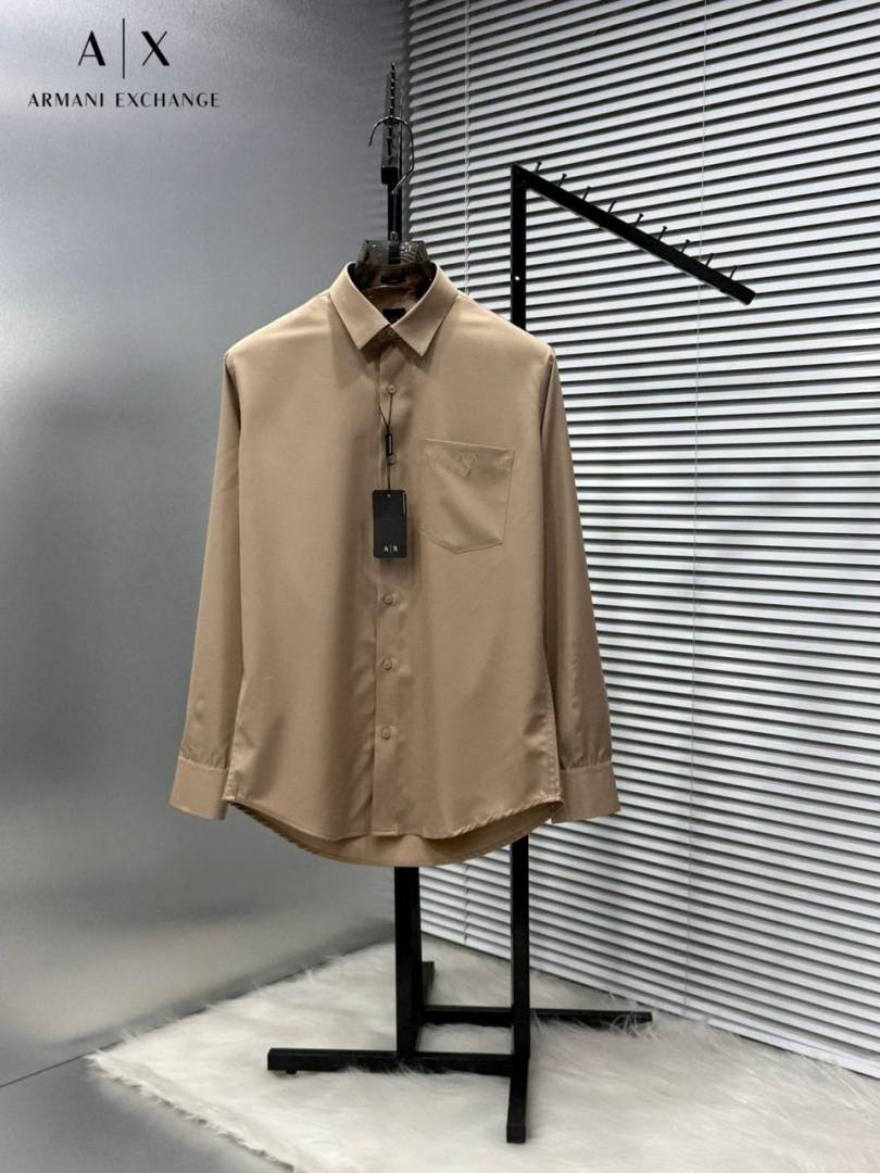 Arman i Exchange Beige Premium Korean Lycra Imported Fabric Shirt With custom Branded Button Tagging and Pocket Embroidered Logo with Brand Packing 2803