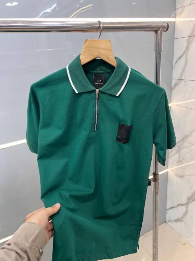 Arman i Exchange Green Premium Imported Polo T shirt Cotton Matty Fabric with Collar Design and Zip Style 2370