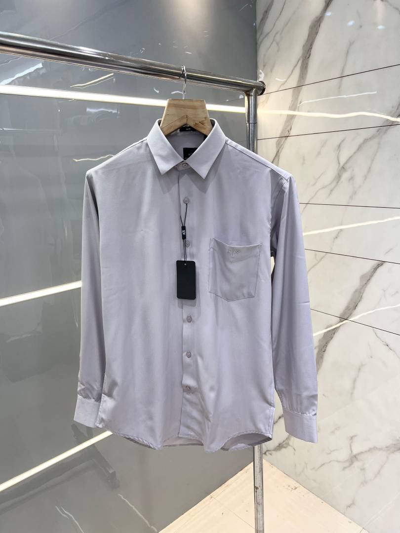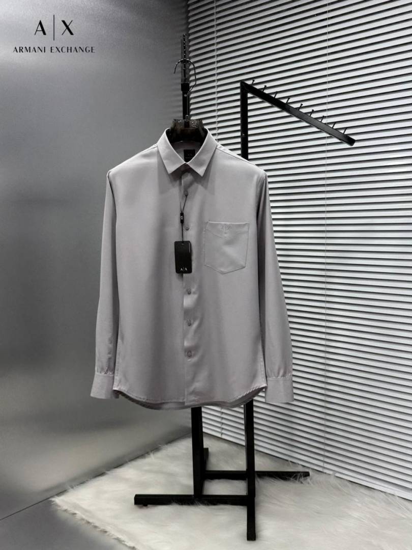 Arman i Exchange Grey Premium Korean Lycra Imported Fabric Shirt With custom Branded Button Tagging and Pocket Embroidered Logo with Brand Packing 2802