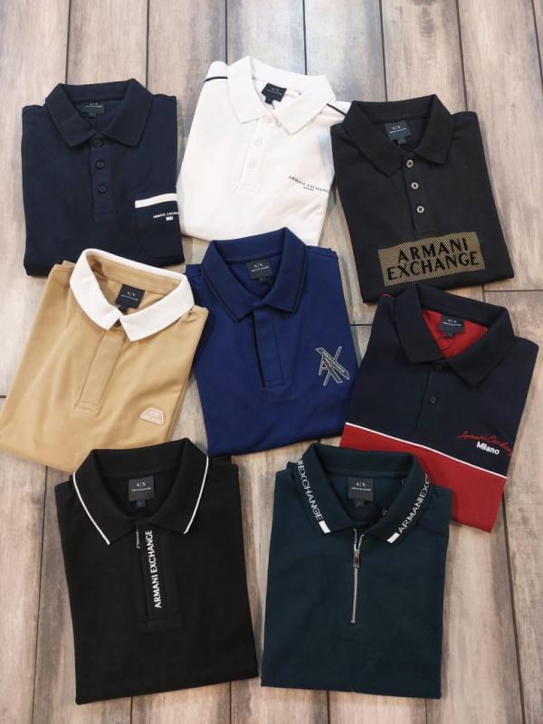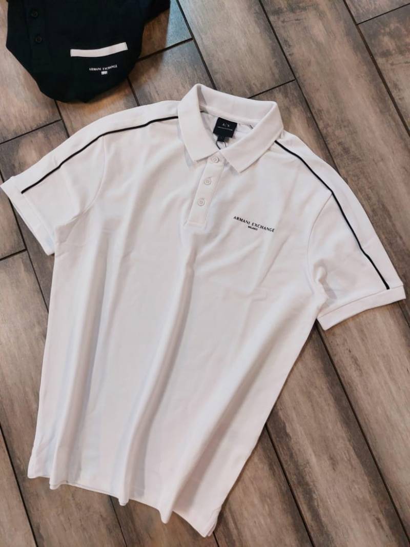 Arman i Exchange White Premium Cotton Lycra Pique fabric Polo Tshirt with Shoulder Strip Design and Emboss Logo 3119