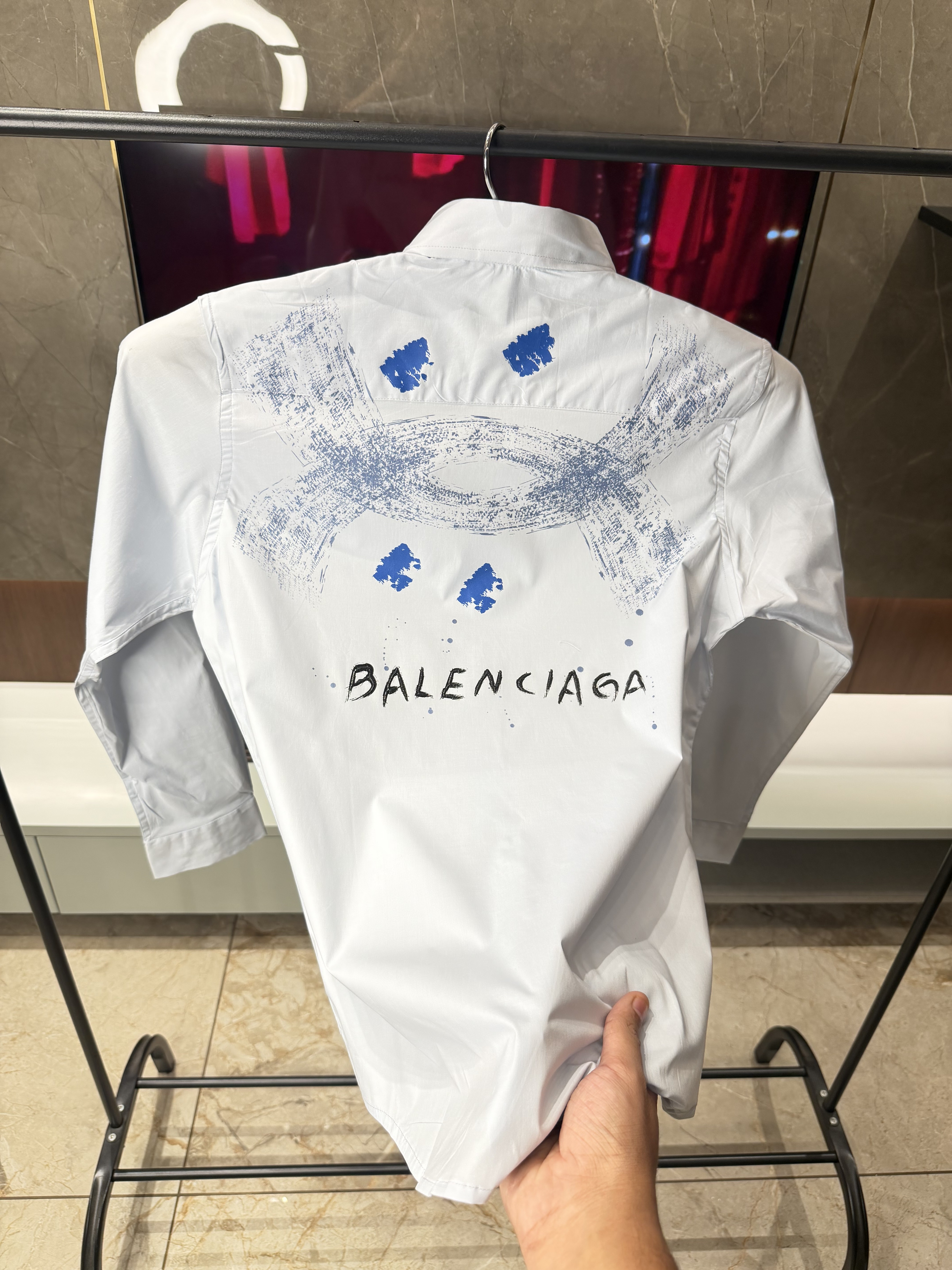 Balenciaga Sky Blue Back printed oxford cotton shirt