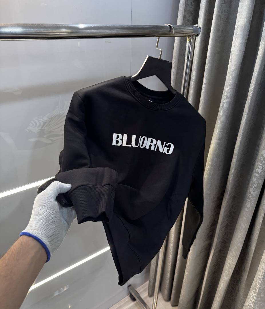 Bluorng Black Embossed Logo Premium Sweatshirt