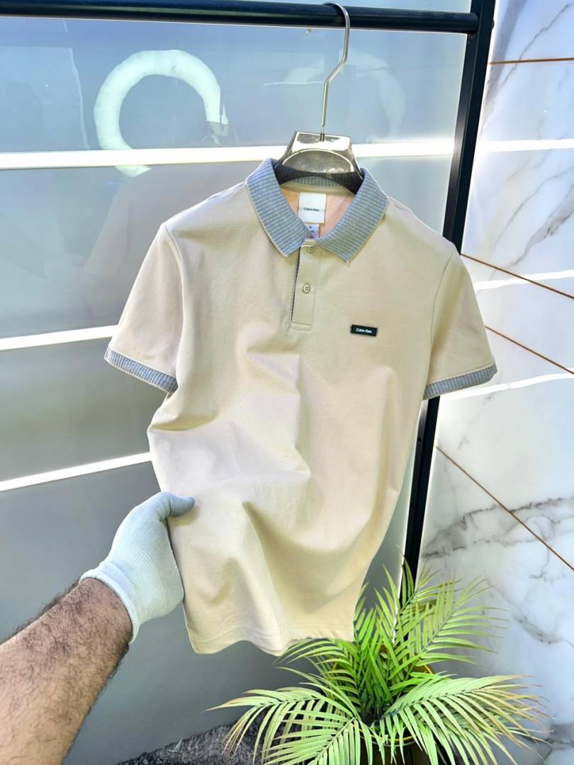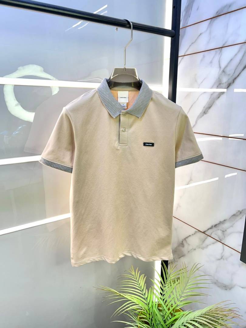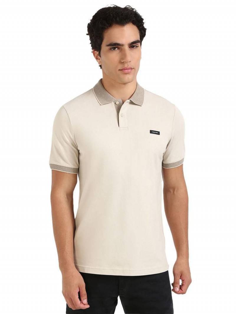 Calvin_Klein Beige Collar Neck Premium Polo T-shirt F3383-BE