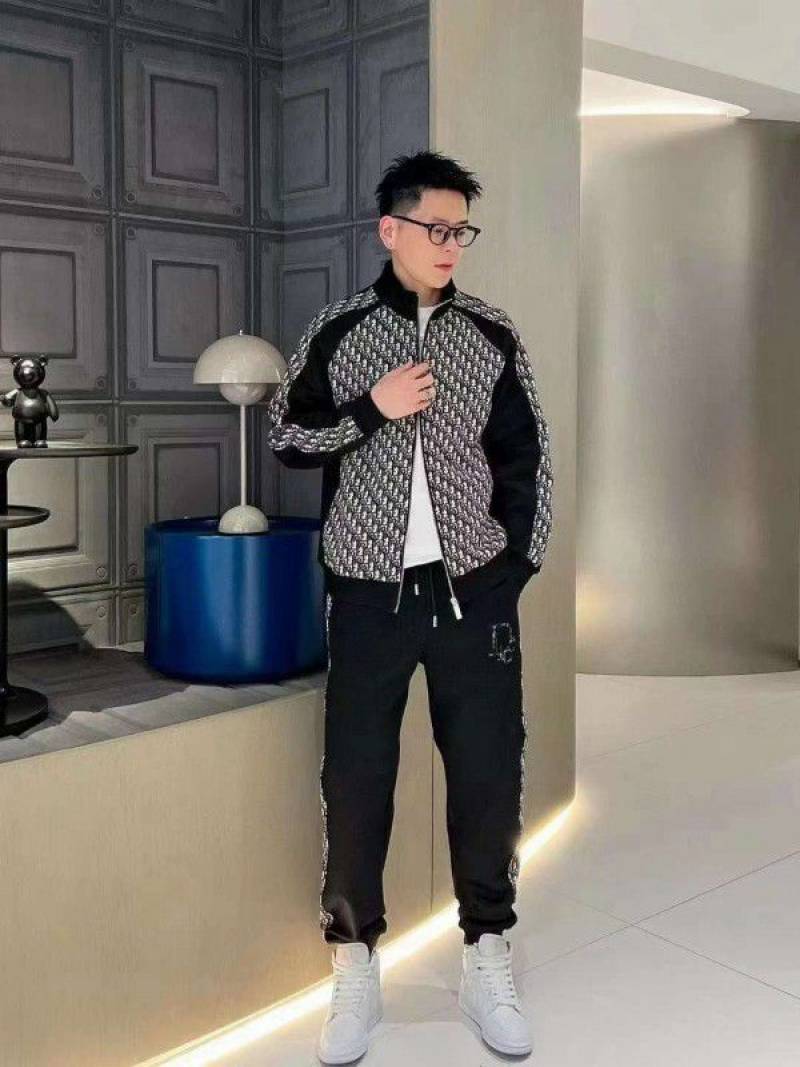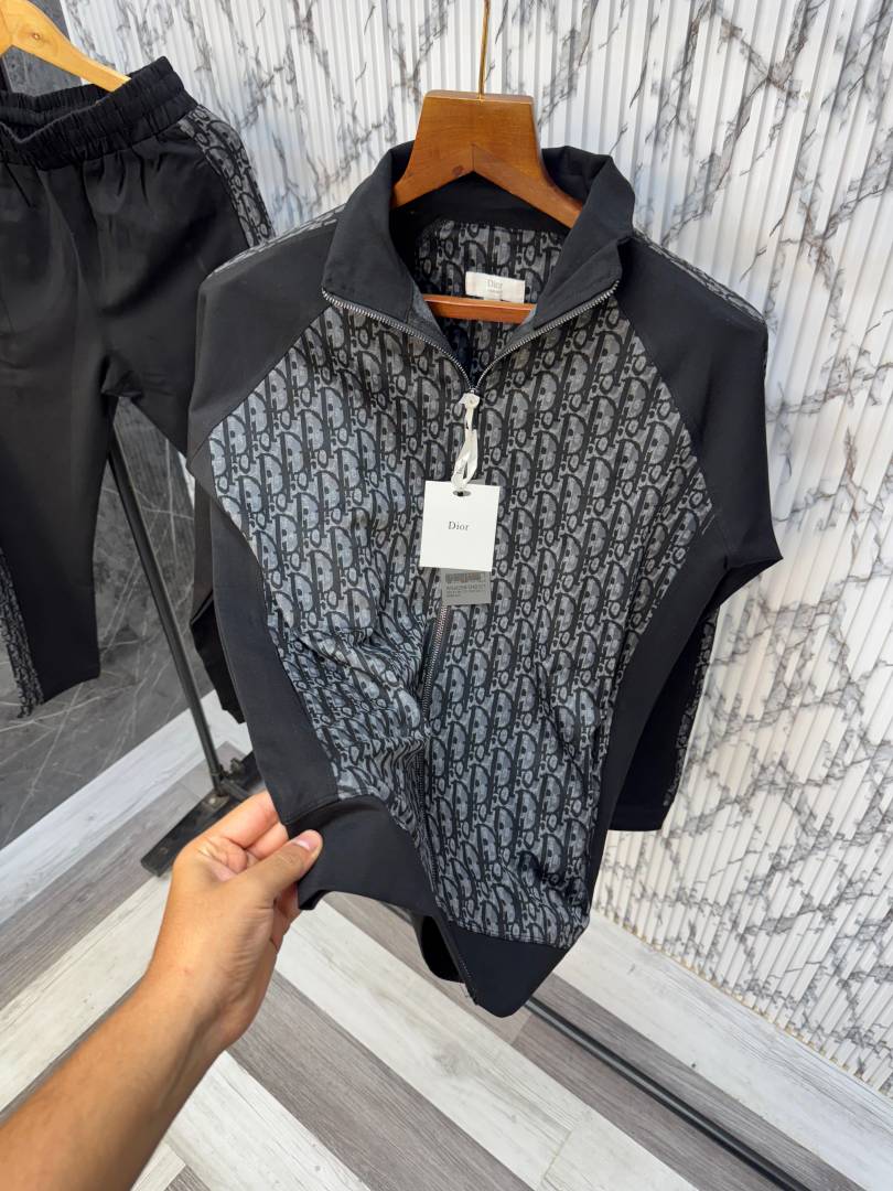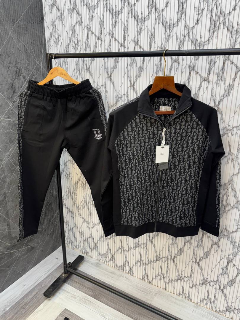 Christian Dio r Black Monogram Design with Jacquard Fabric Premium Tracksuit 3350