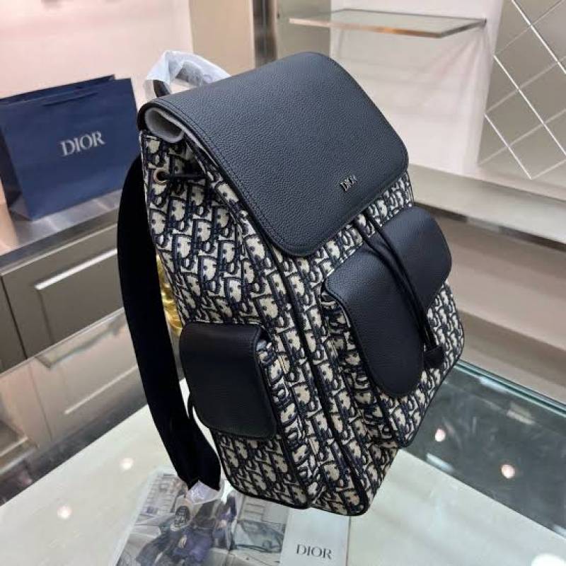 Christian dior_ saddle backpack with the signature oblique pattern With Dust Cover premium quality