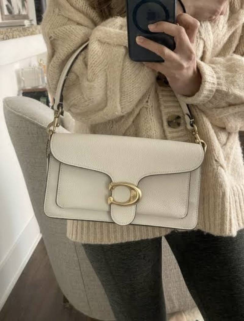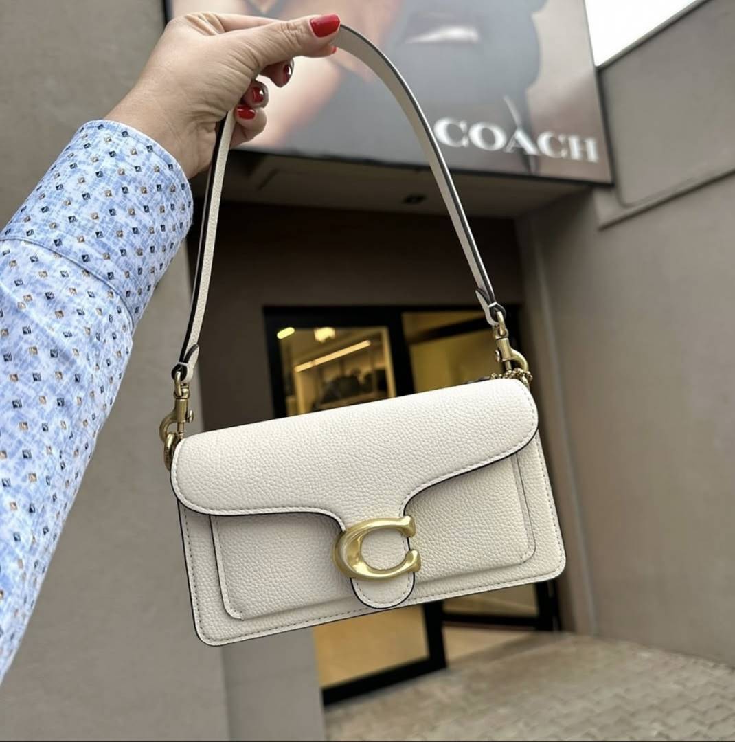 COAC.H WHITE LETAHER PREMIUM HAND BAG WITH OG BOX & DIST BAG