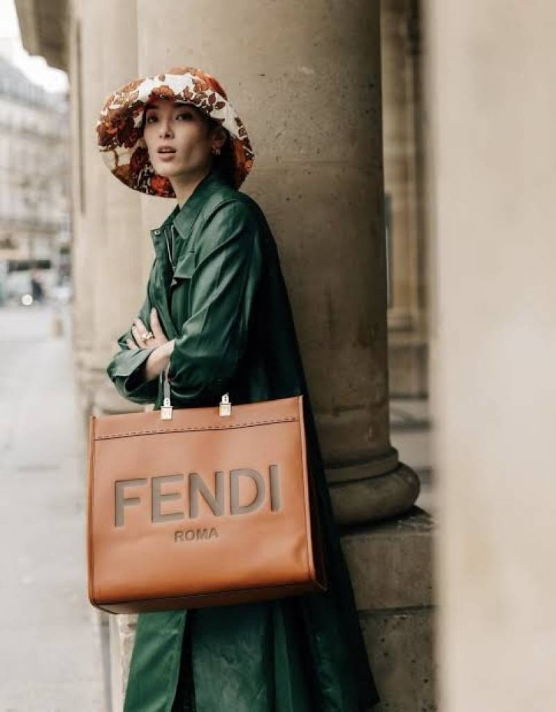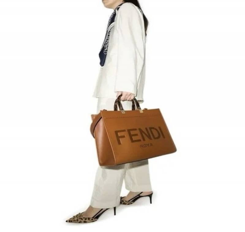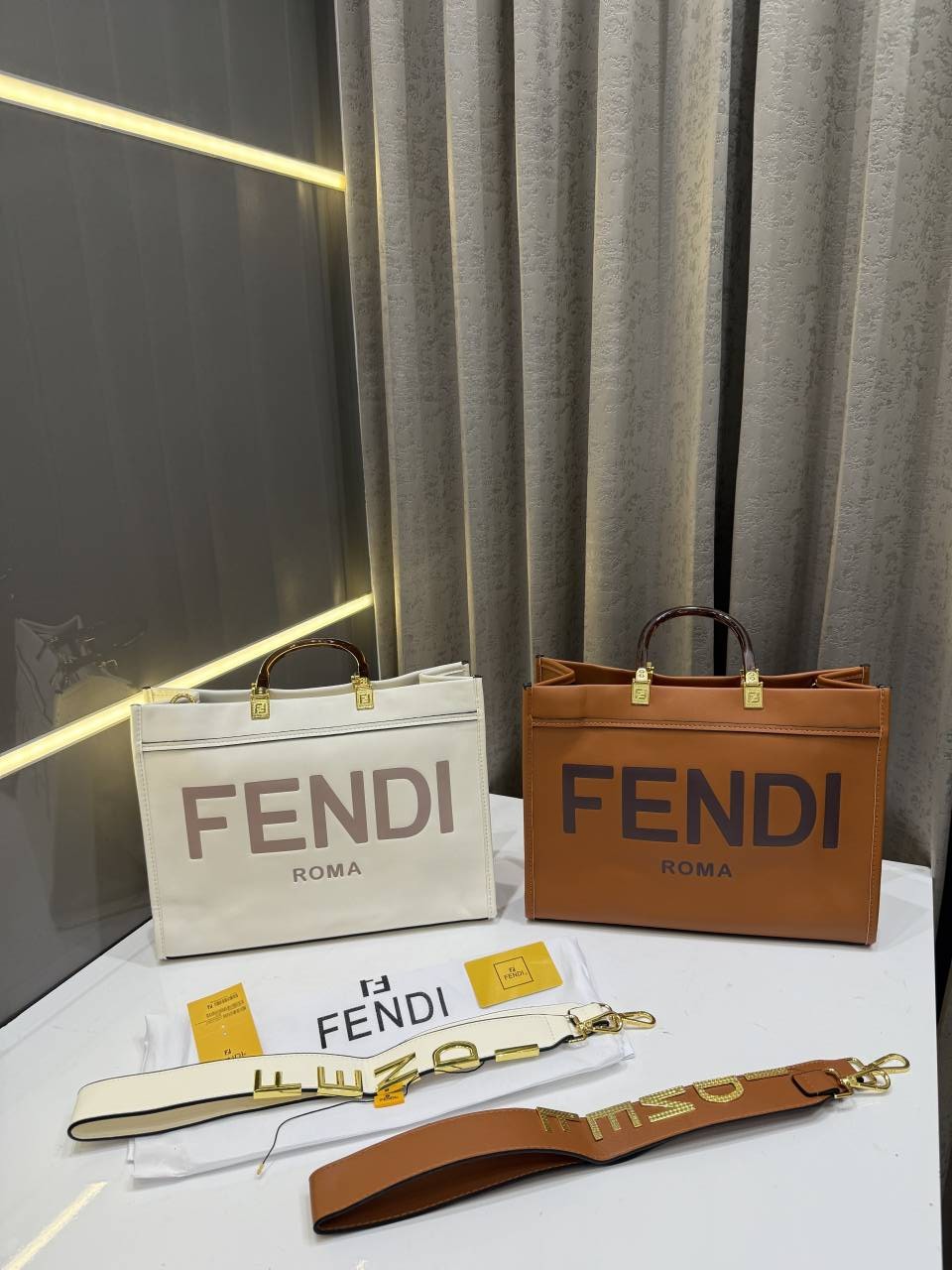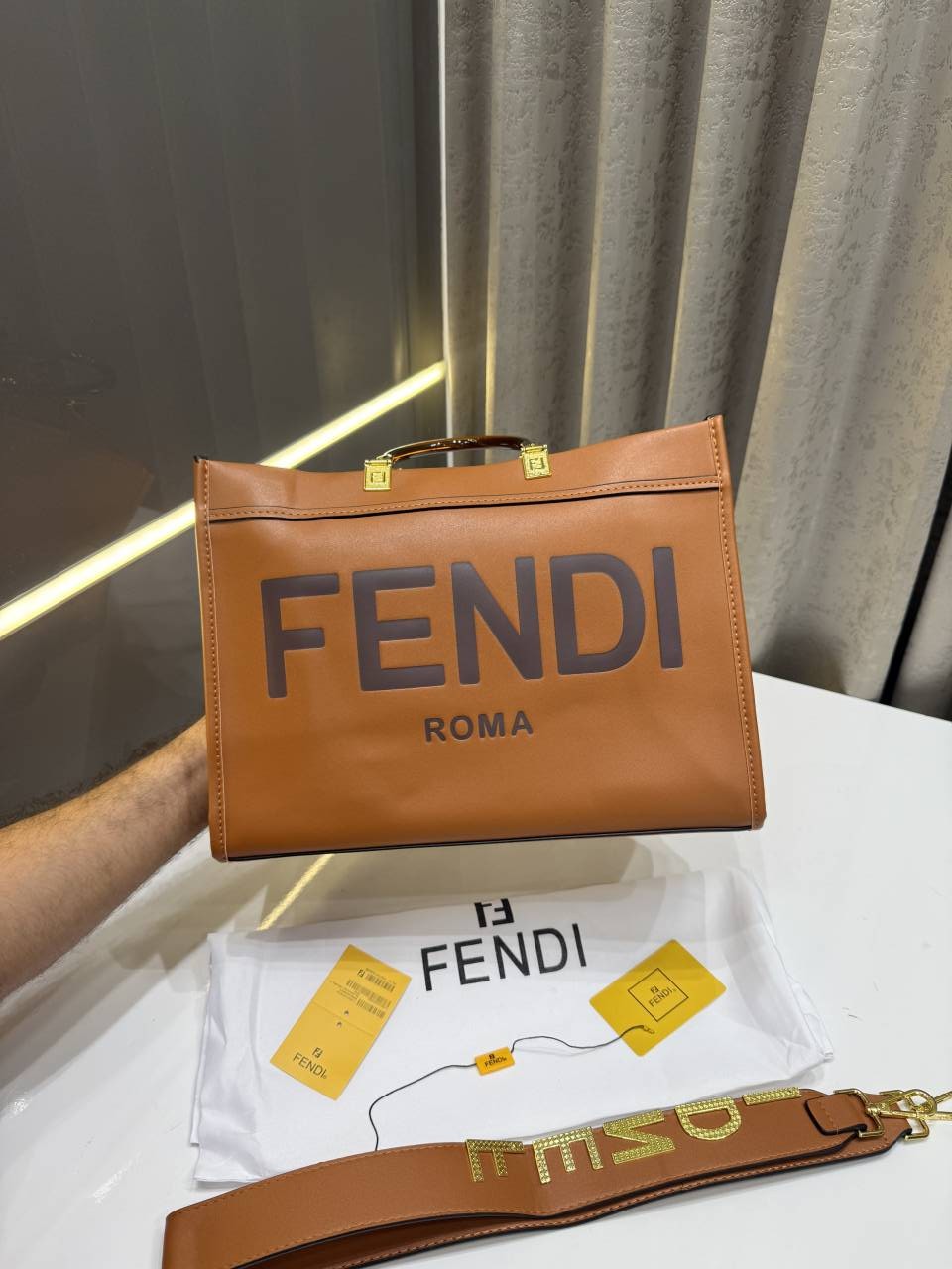 FEND.I BROWN SUNSHINE LARGE PREMIUM TOTE WITH DUST BAG