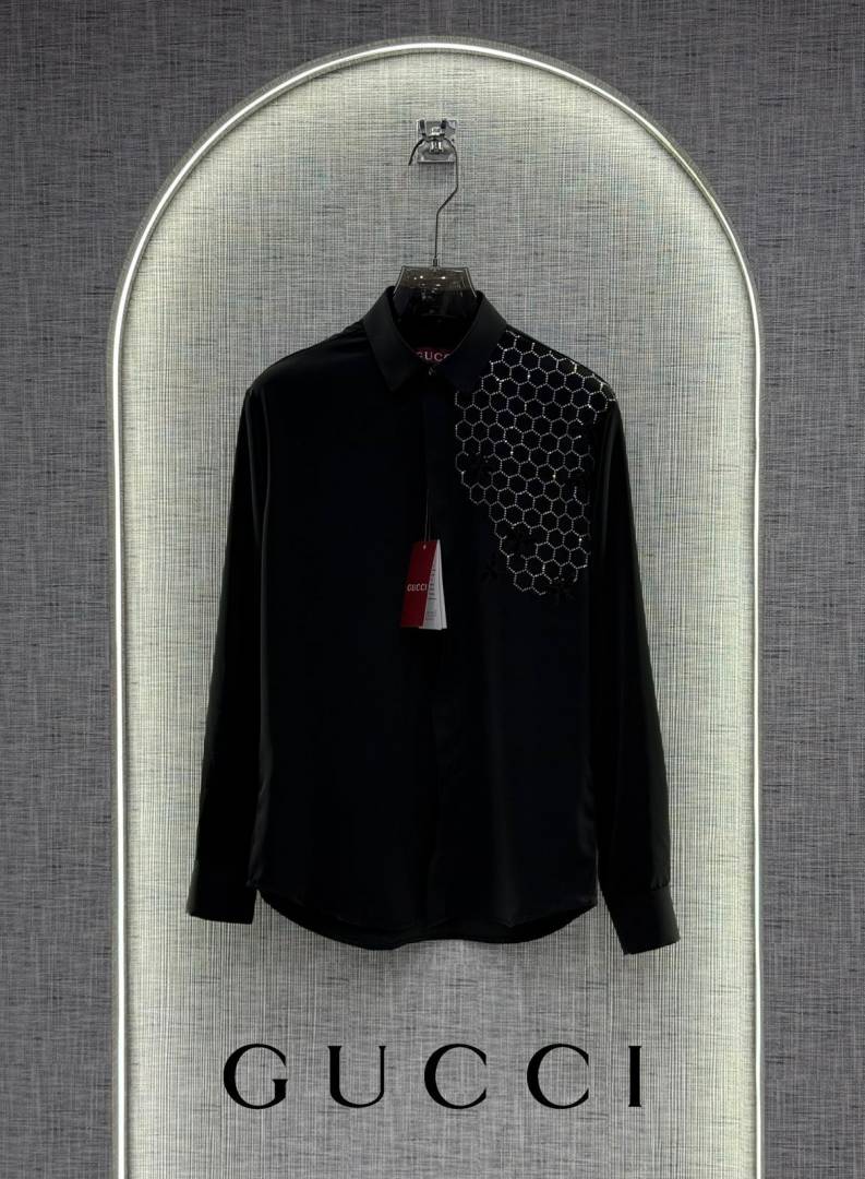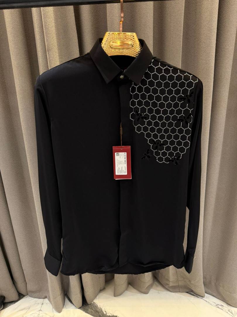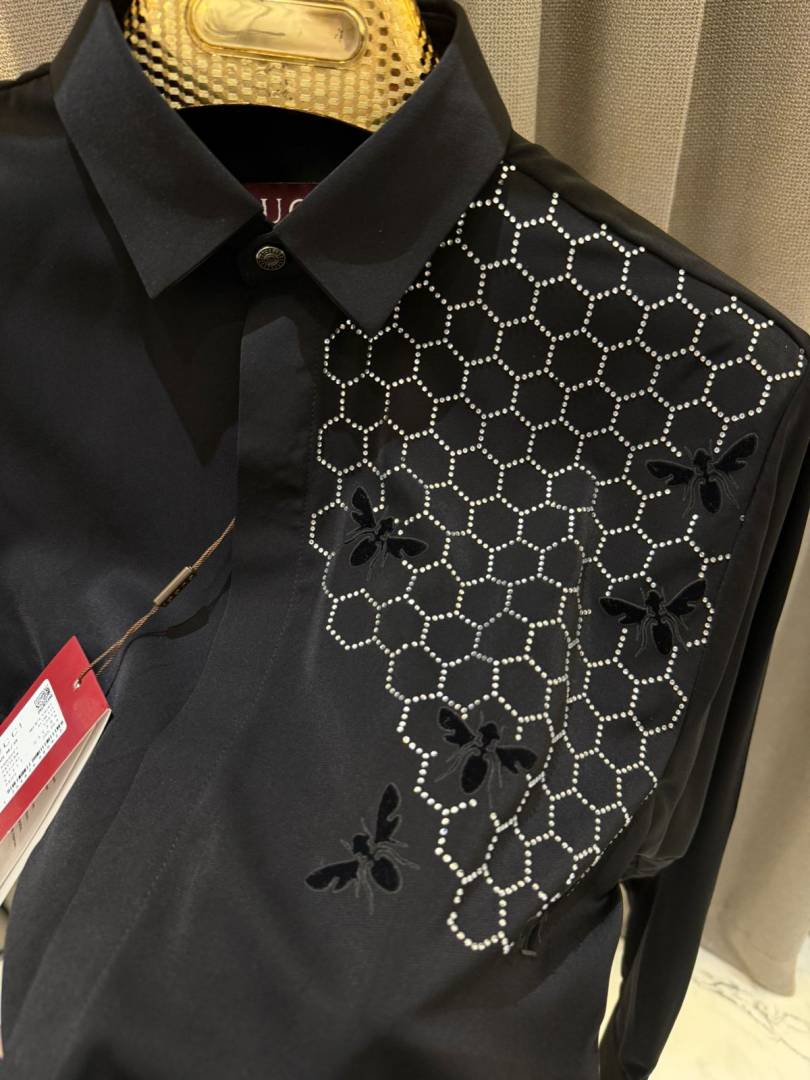 Gucc_i Bee Diamond Embossed Korean Lycra Shirt Black