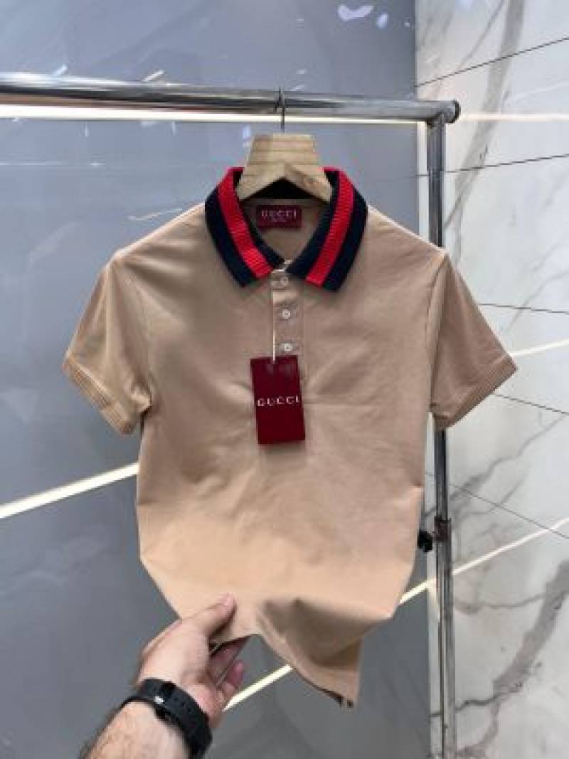 Gucc i Beige Premium Polo T shirt With 240 gsm interlock cotton lycra fabric and Collar Design 2425