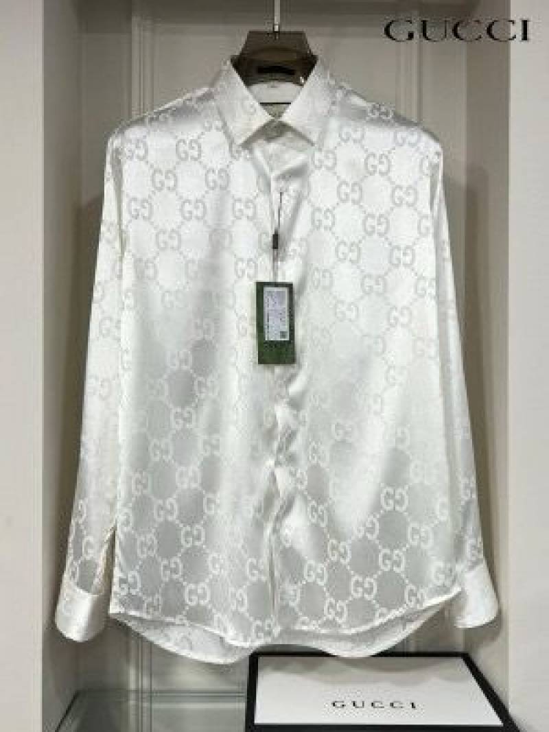 Gucc_i GG Full Monogram Print Full Sleeves Shirt White