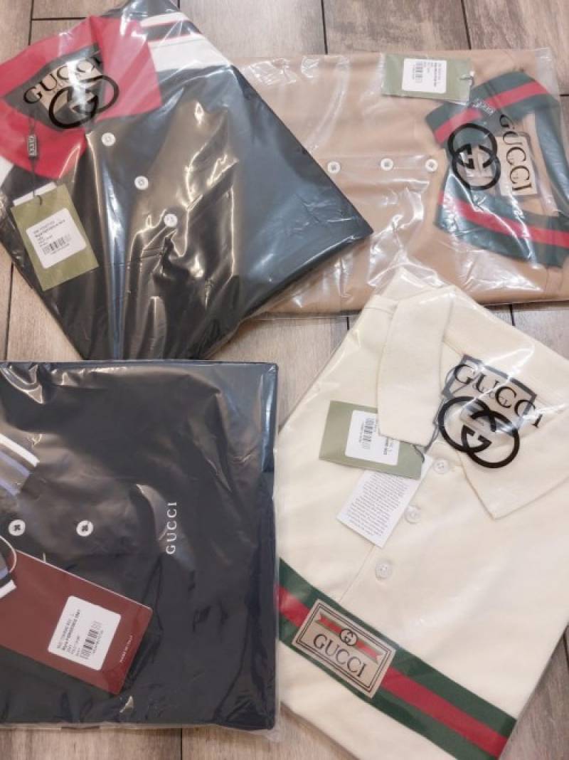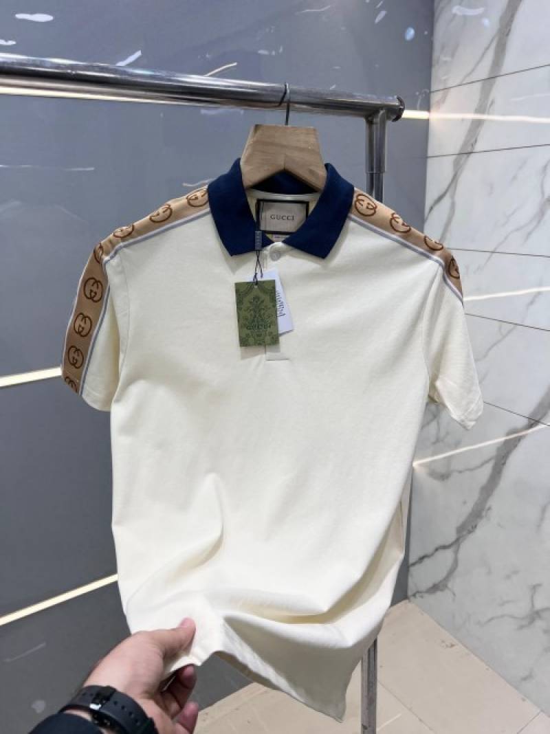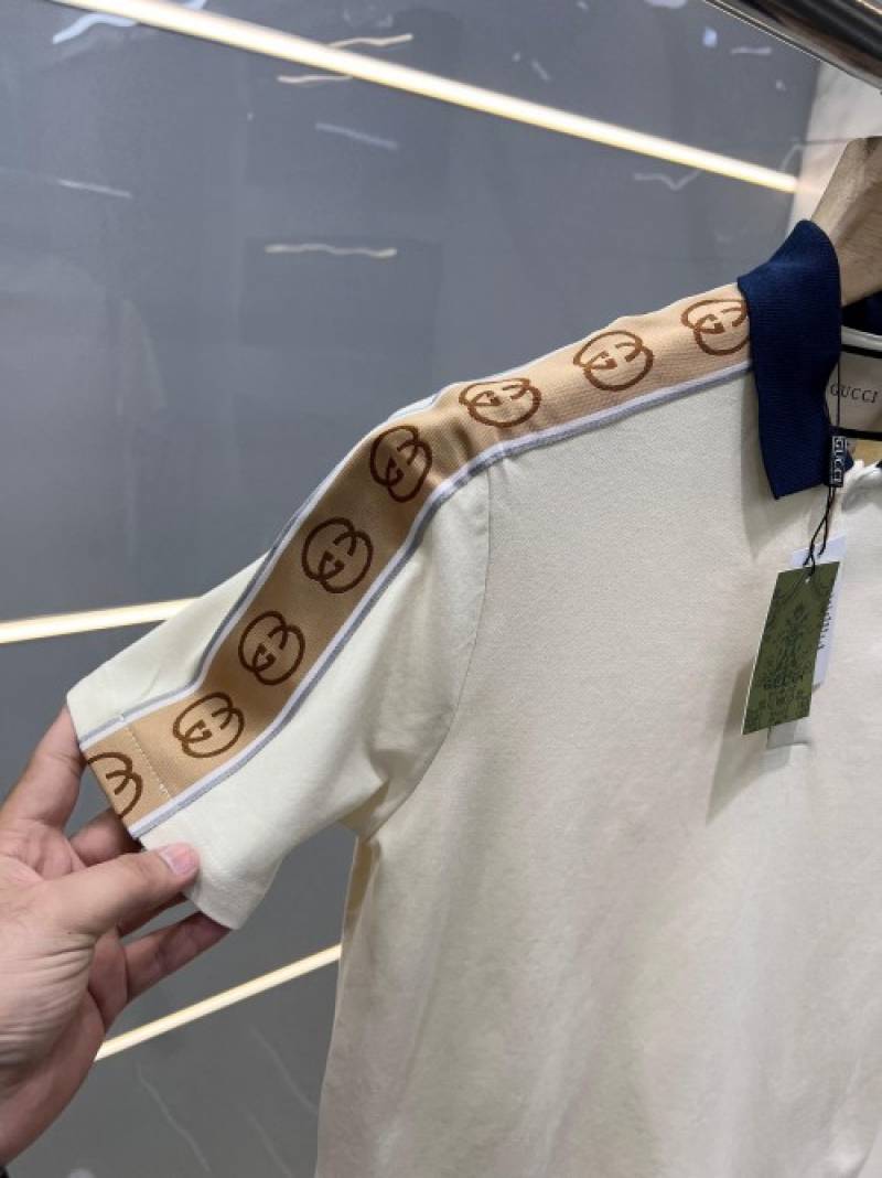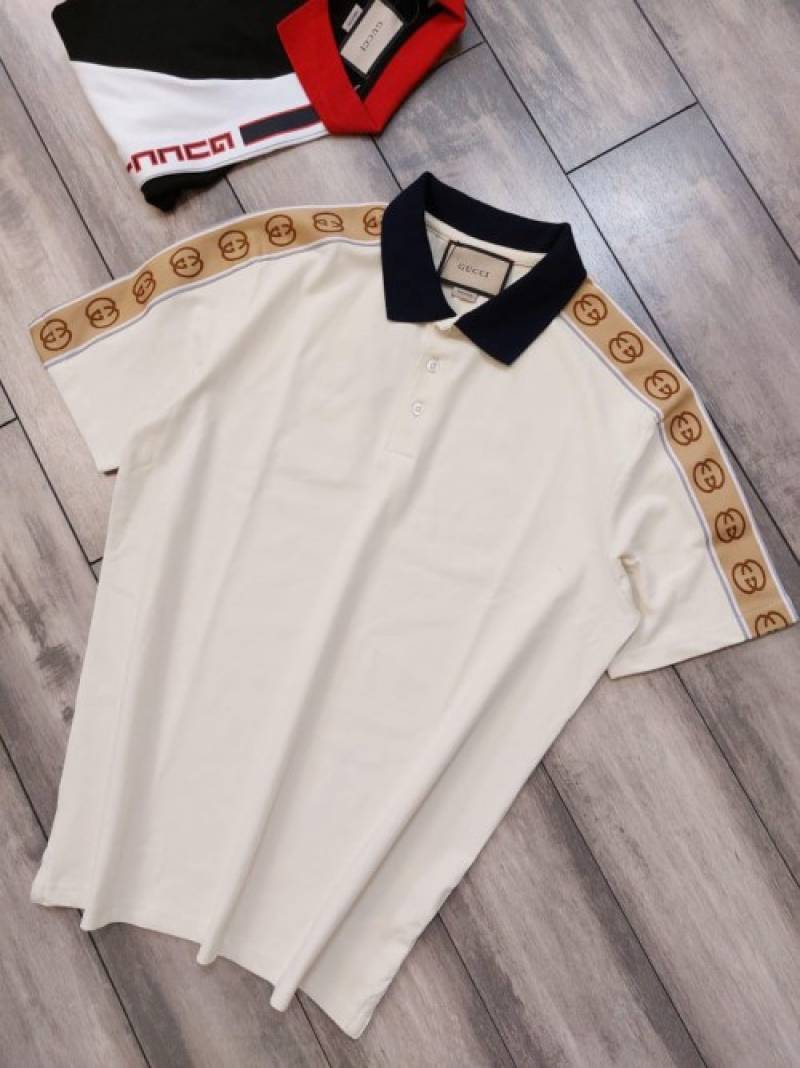 Gucc i Offwhite Premium Polo T shirt With 240 gsm interlock cotton lycra fabric with Collar Design and Shoulder Logo Strip 2624