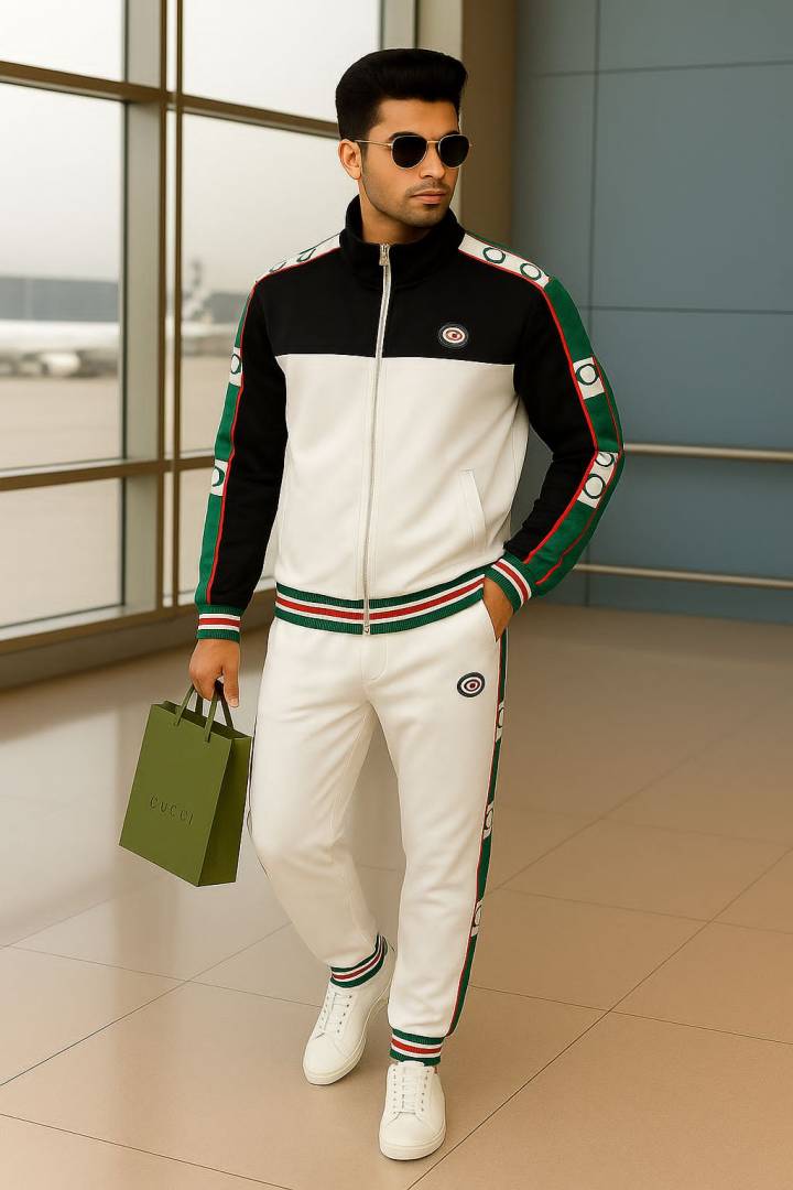 • Gucc i Imported White Monogram Super Premium Track Suit With Brand Carry Bag F3149-WH