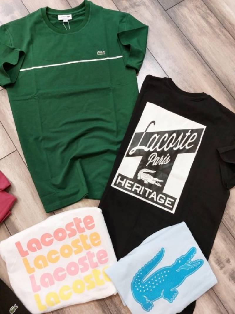 Lacost e Black Premium Imported 200 GSM Interlock Lycra Fabric Round Neck Front and Back Printed Logo Tshirt 2660