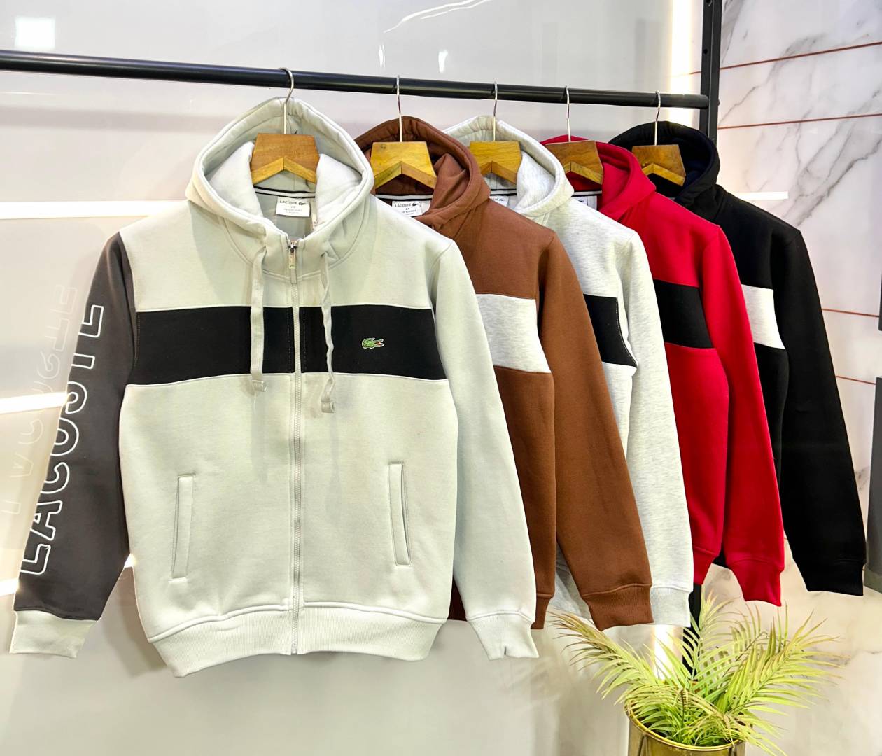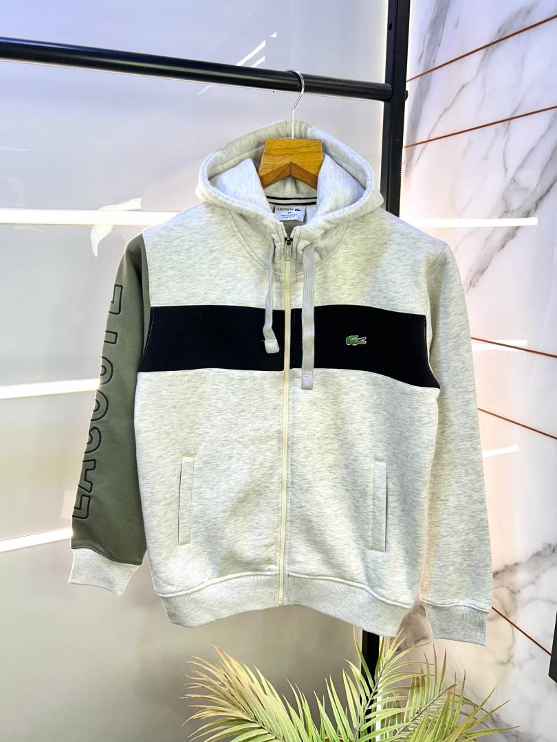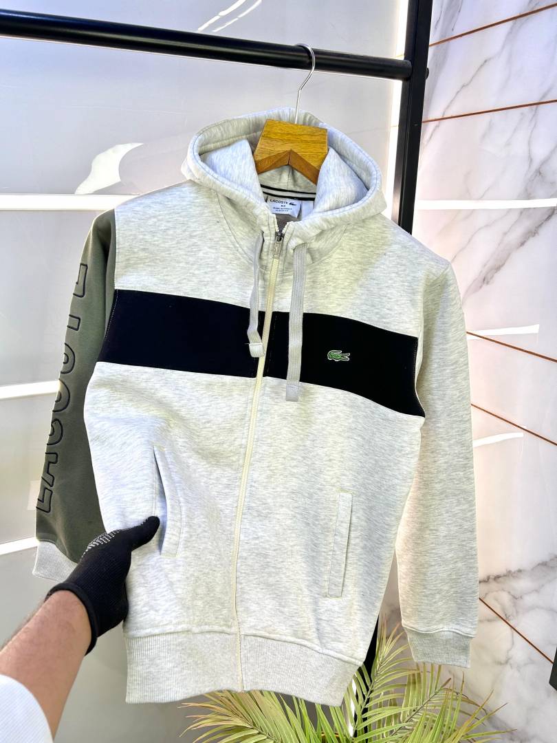 Lacost e Imported White Embroidery Logo Super Premium Zipper Hoodie F2171-WHI