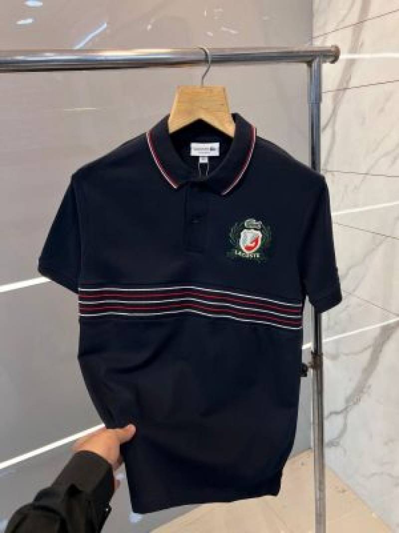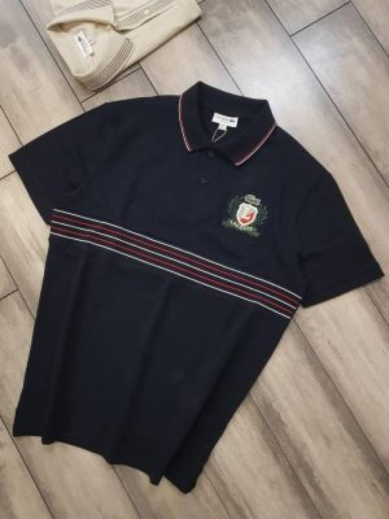 Lacost e Navy Blue Premium Imported 240 GSM Interlock Cotton Lycra Fabric Polo T shirt Embroidery Logo 2310