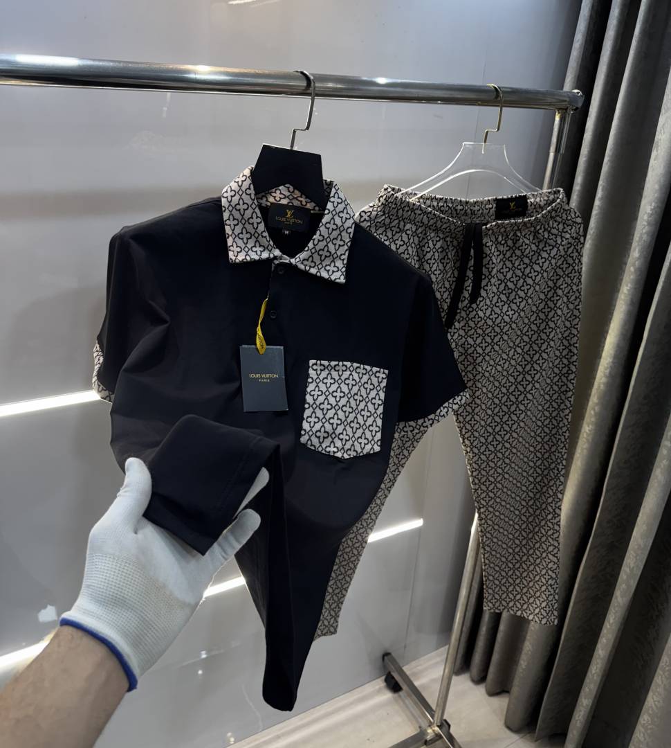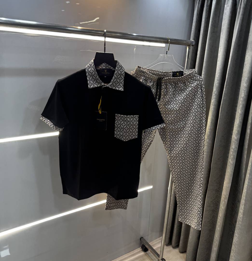 Louis Vuitton Black Beige Monogram Imported Premium Tracksuit With Carry Bag
