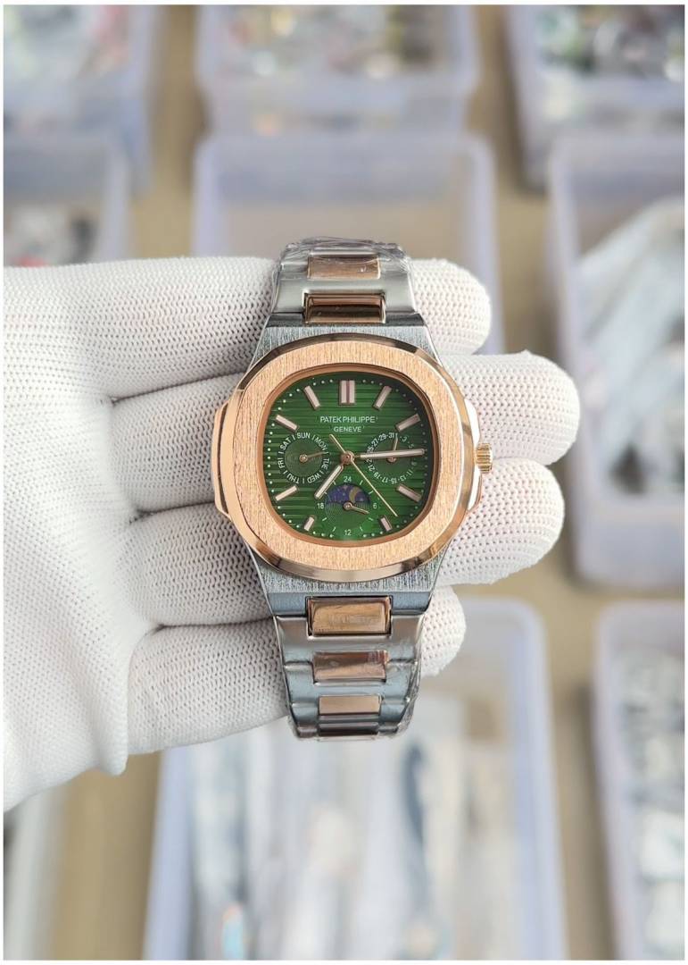 Patek_philippe Nautilus Steel Sun Moon 2Ton-Green