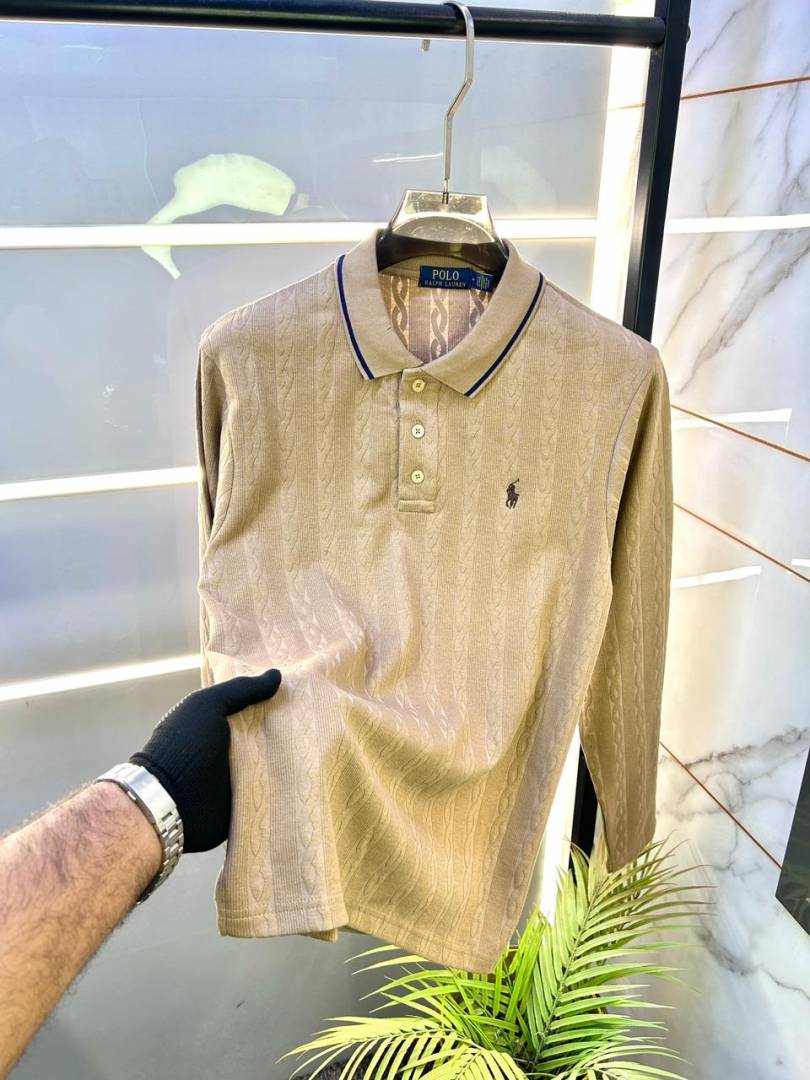 Ralph_Lauren Camel Knitted Full Sleeves Premium Collar T-shirt F2989-CA
