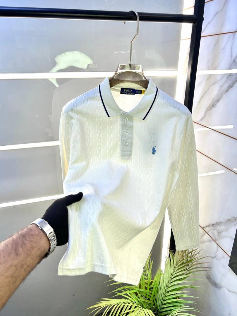 Ralph_Lauren White Knitted Full Sleeves Premium Collar T-shirt F2989-WH