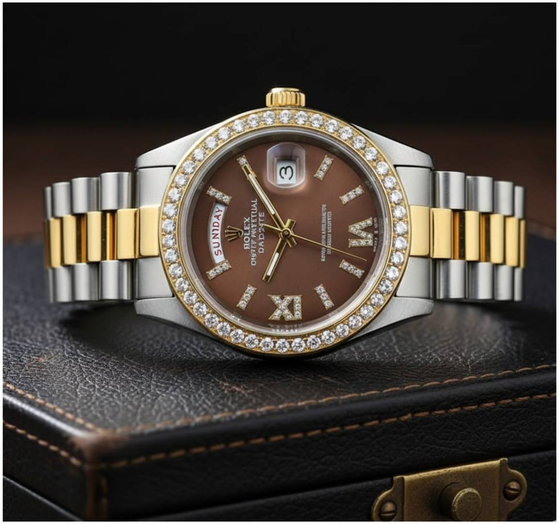 Role_x Oyster Perpetual Day Date Diamond 2Ton-Gold-Brown