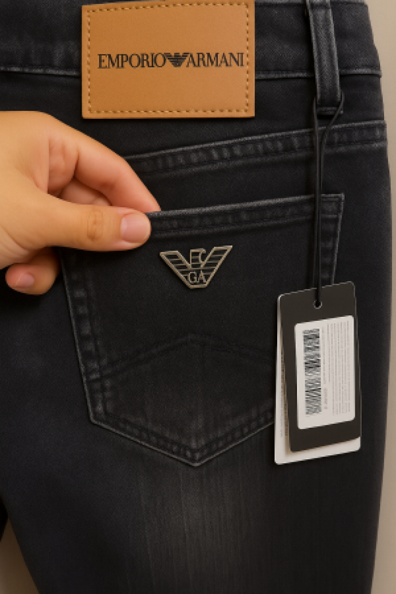 Emporio Arman i Black Imported Lycra Straight Fit Ankle Lenght Denim With Metal Logo 3344