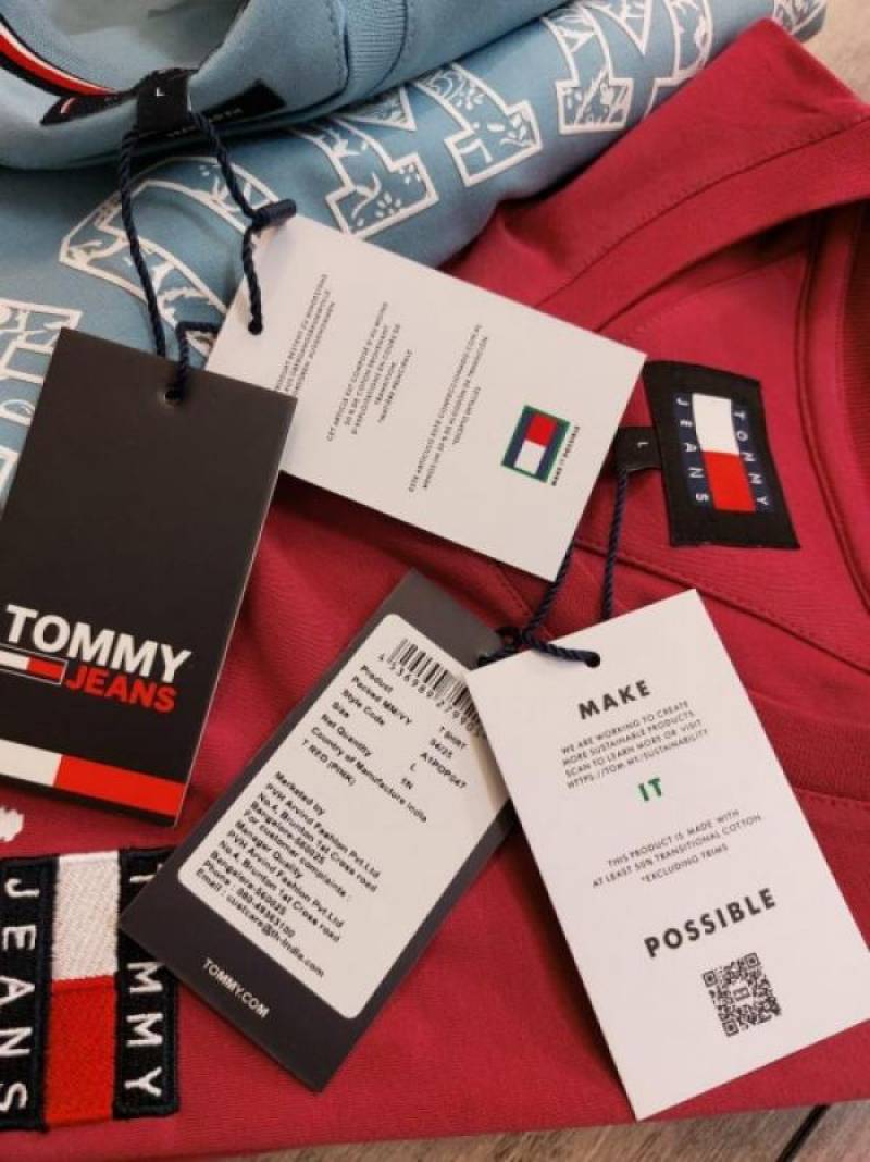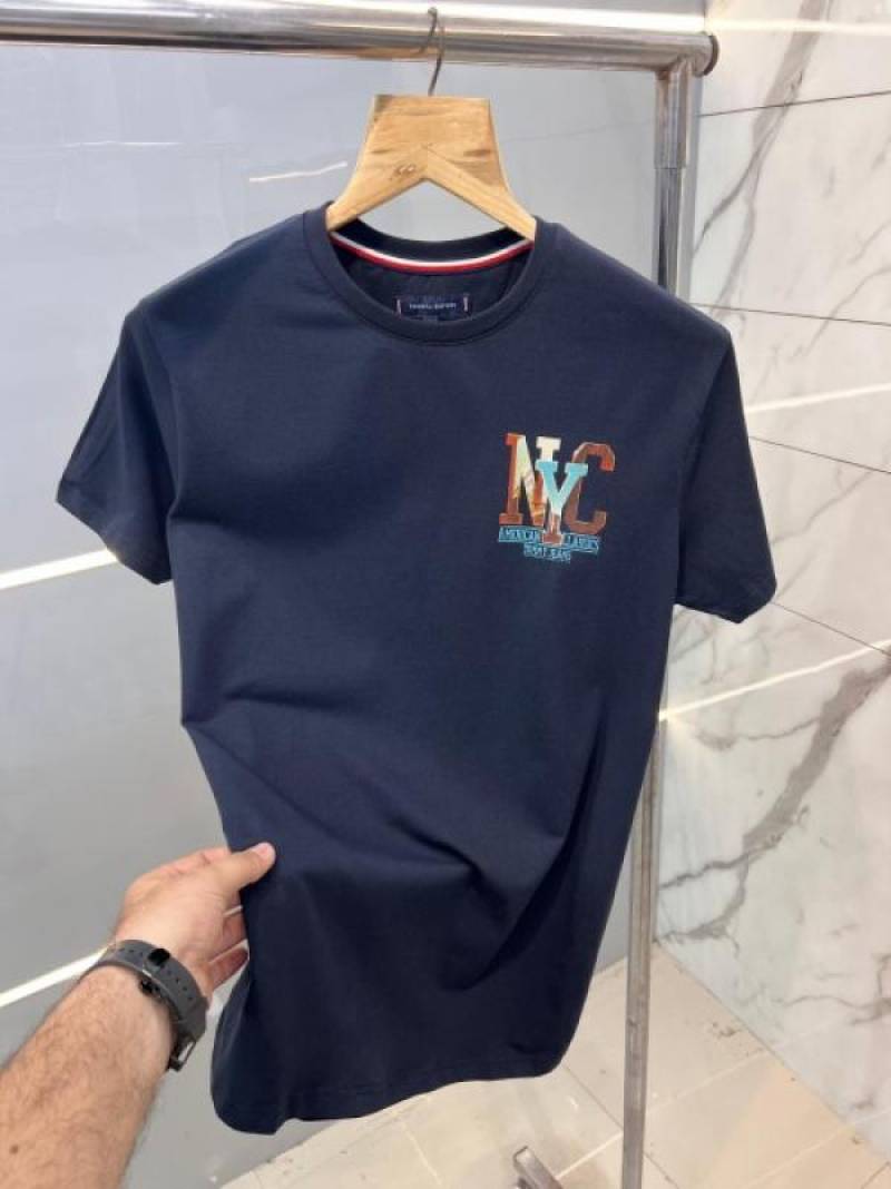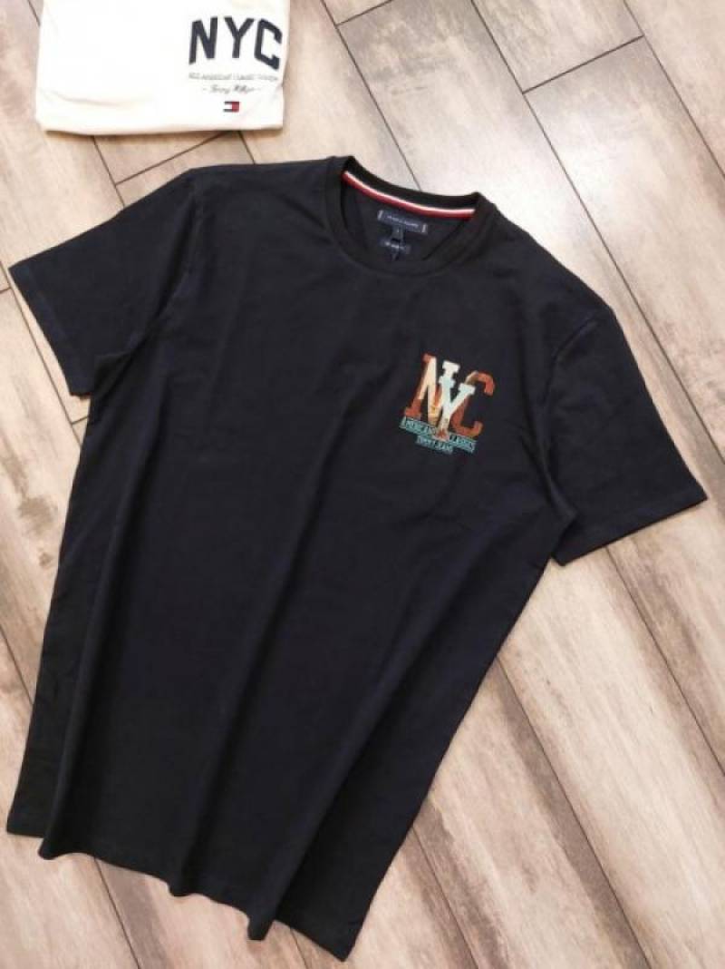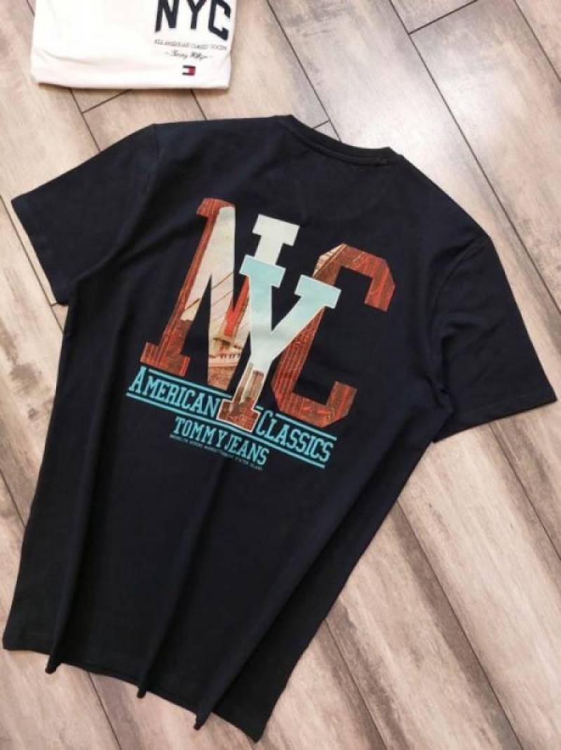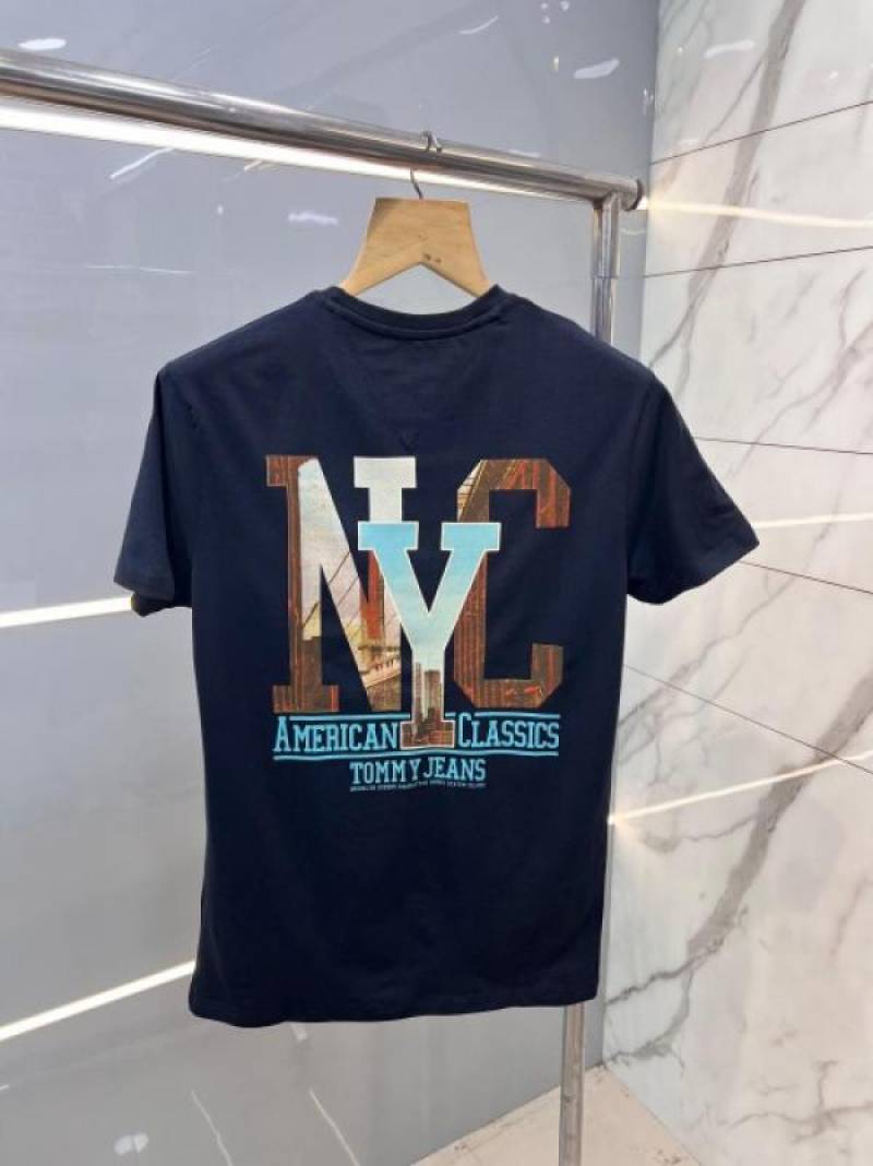 Tomm y Hilfige r Premium Imported Round Neck T Shirts Printed Design Navy Blue 2364