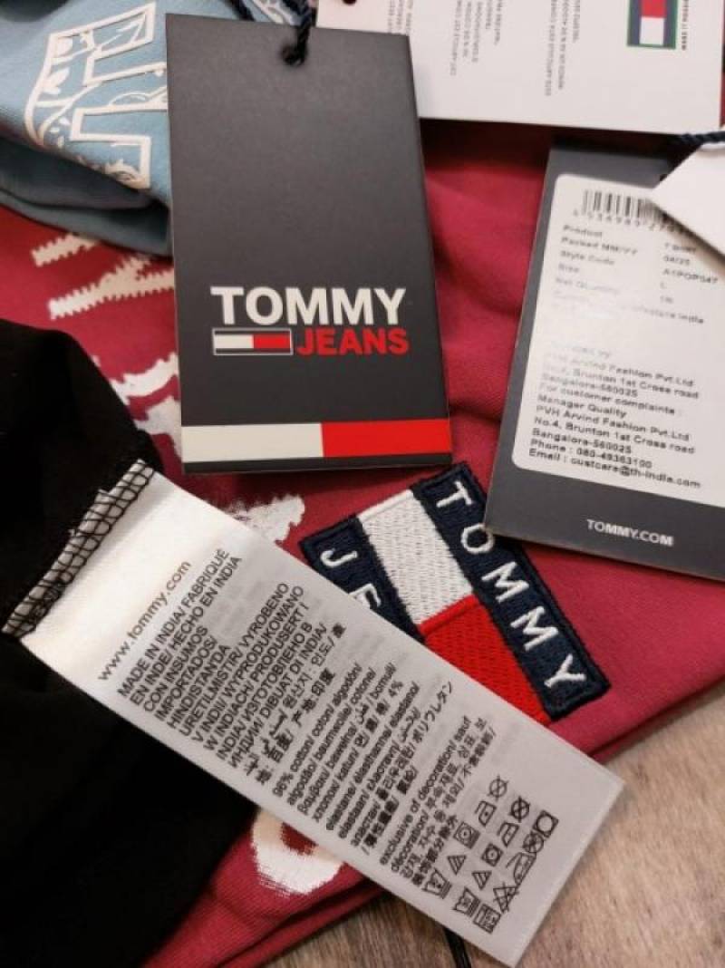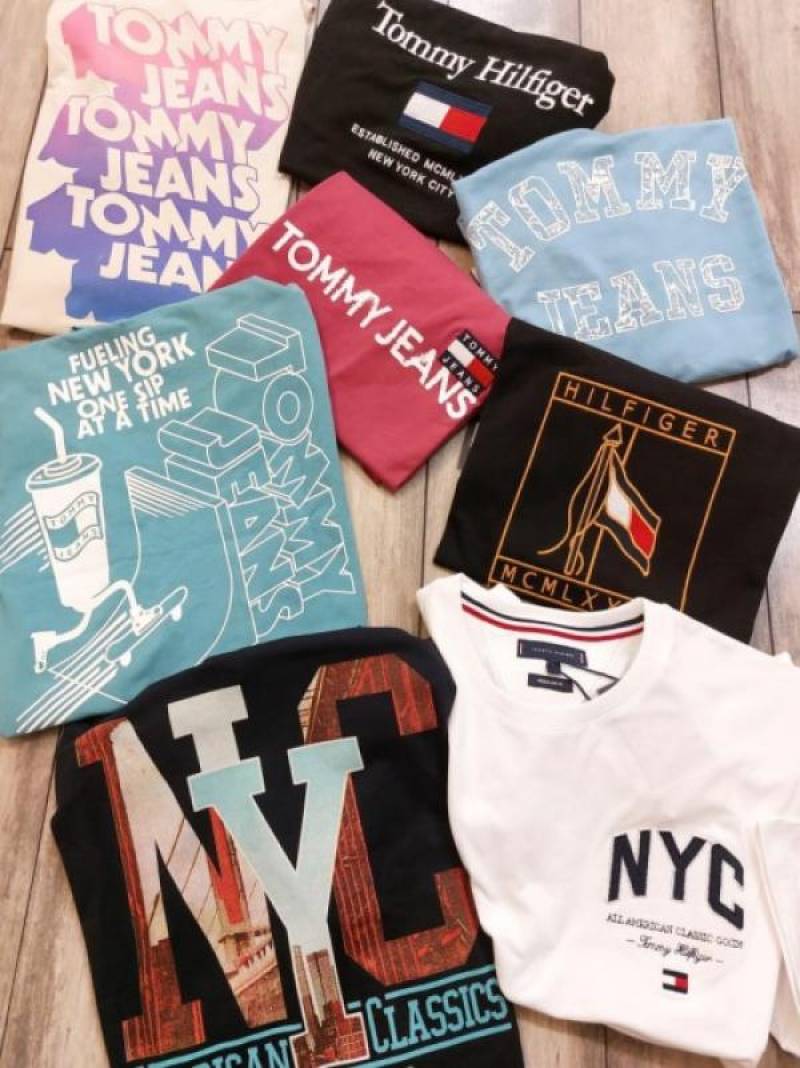 Tomm y Hilfige r Premium Imported Round Neck T Shirts Printed Design White 2366