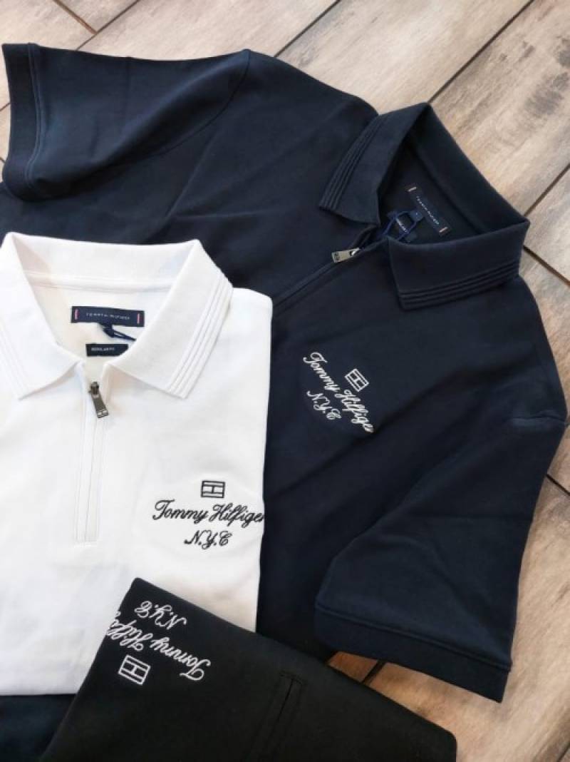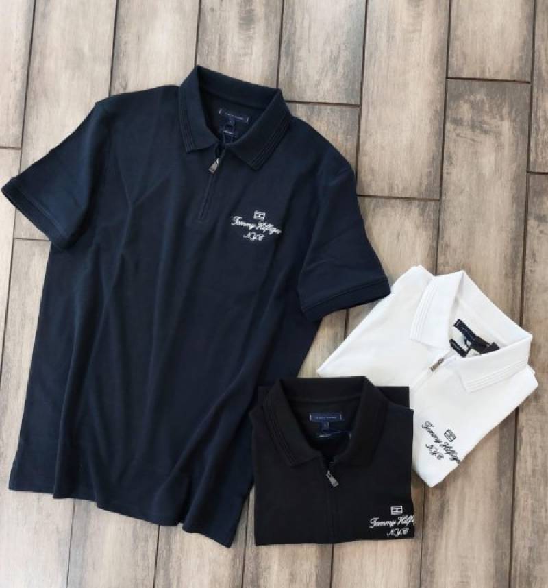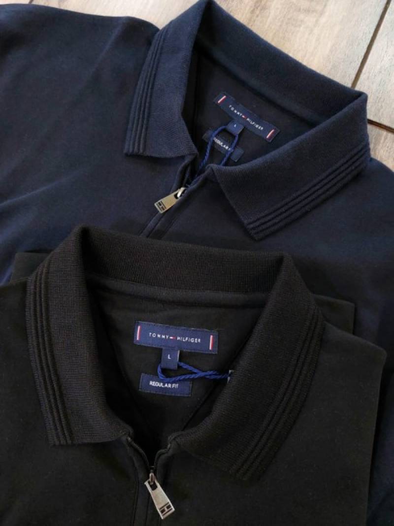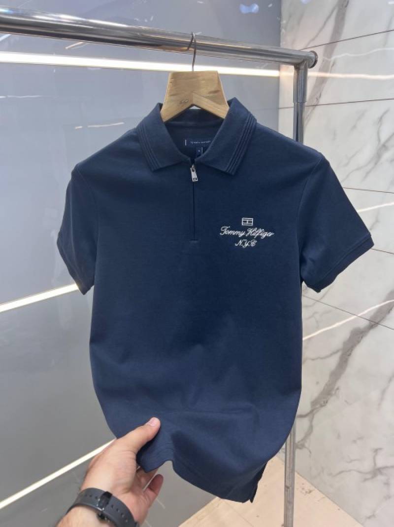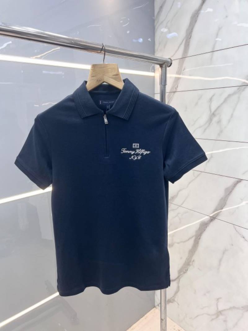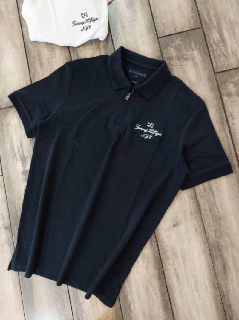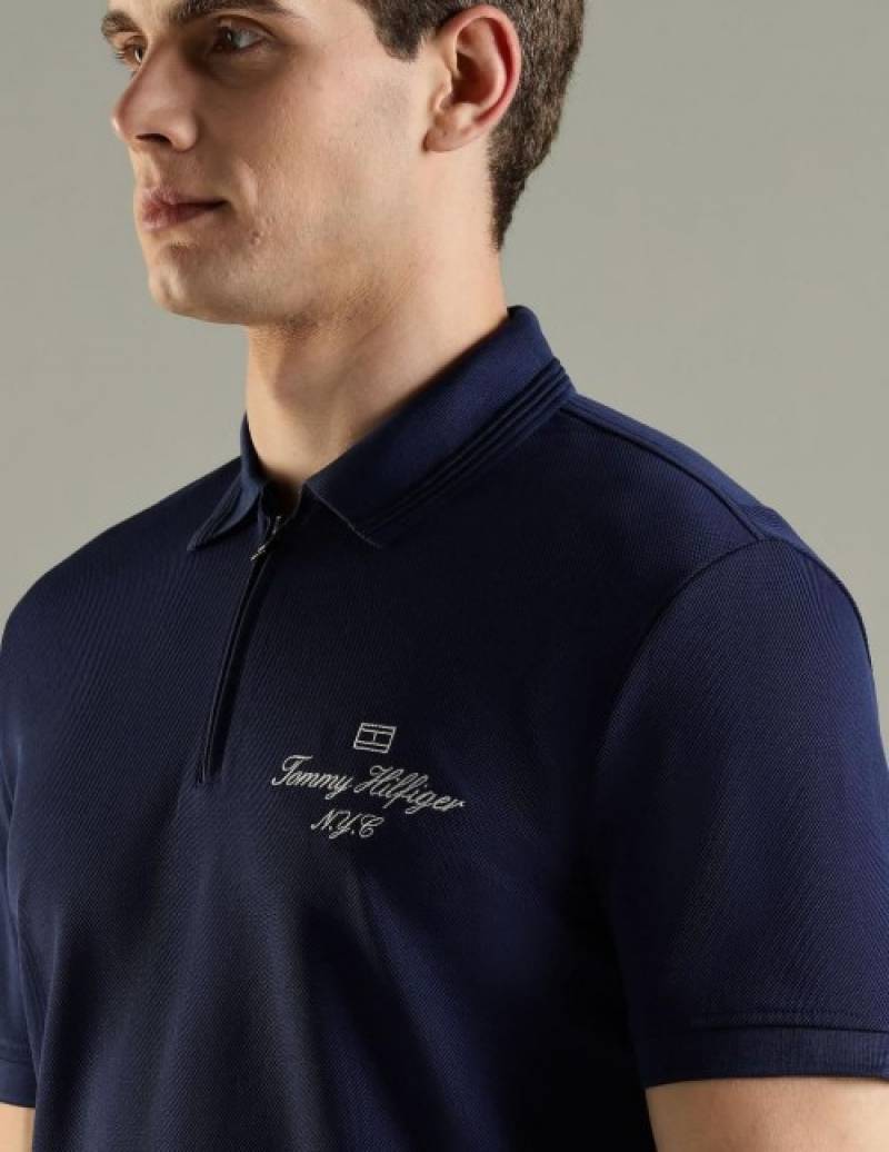 Tommy Hilfige r Navy Premium Polo TShirt with 240 gsm interlock cotton lycra fabric with Embroidery Logo And Branding Half ZIP 2791
