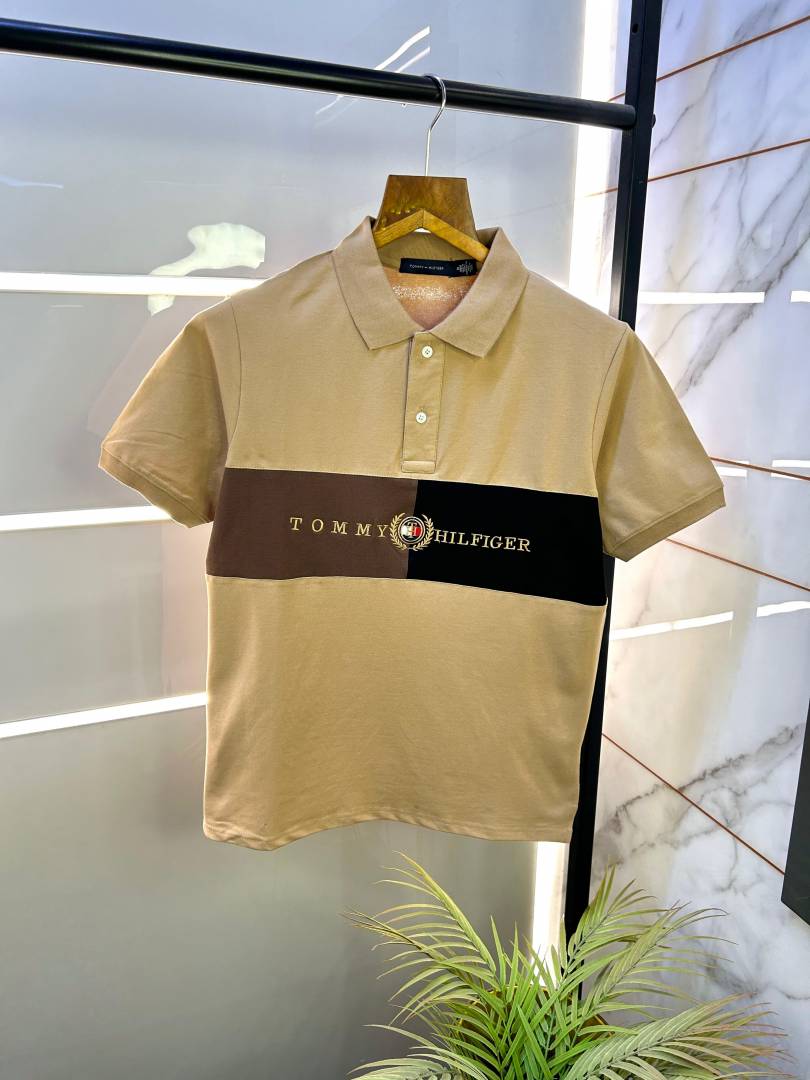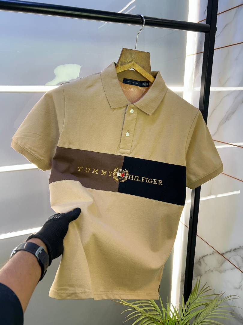 Tommy_Hilfiger Beige Embroidery Print Premium Polo T-shirt F2575-BE