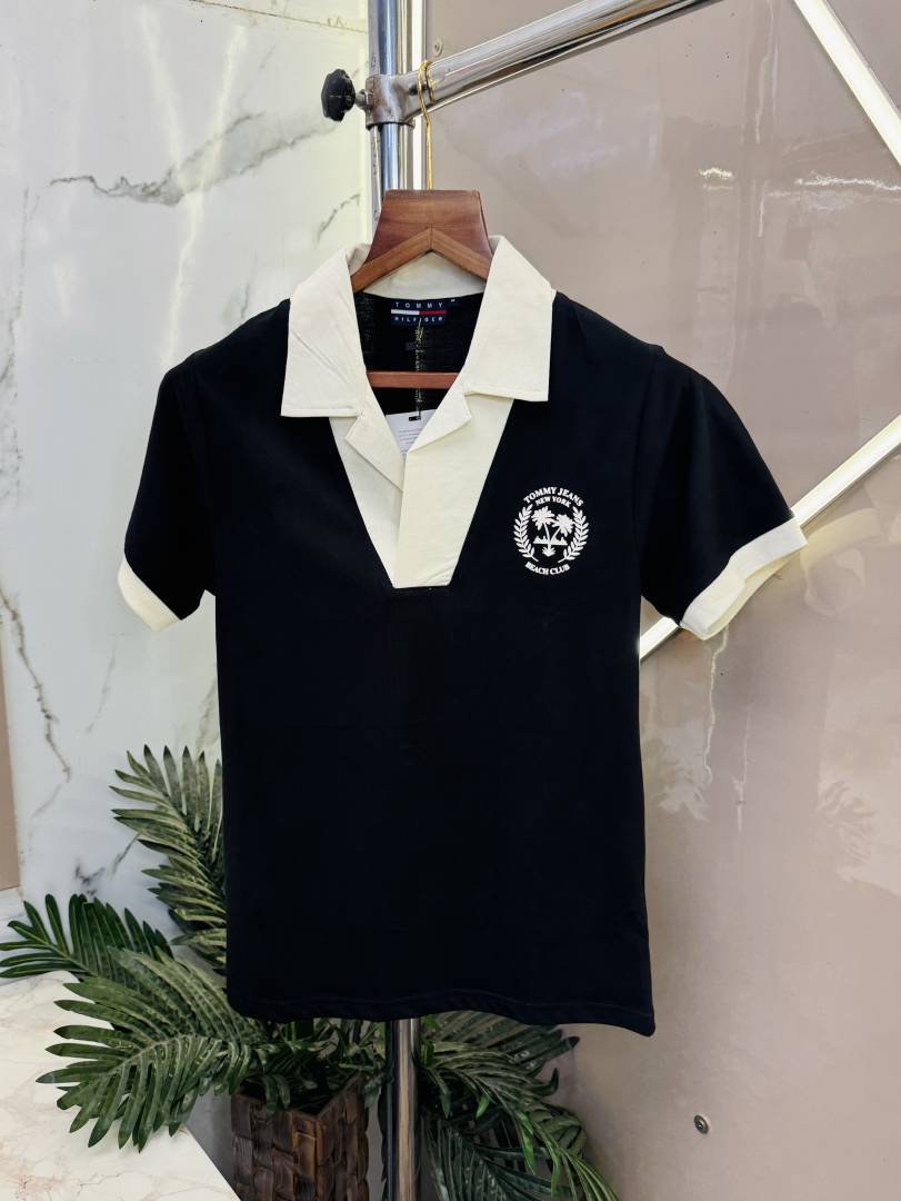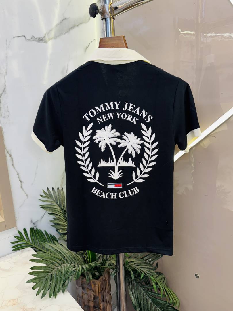 SALE TOMMY HILFIGE_R BLACK PREMIUM FRONT PRINTED POLO