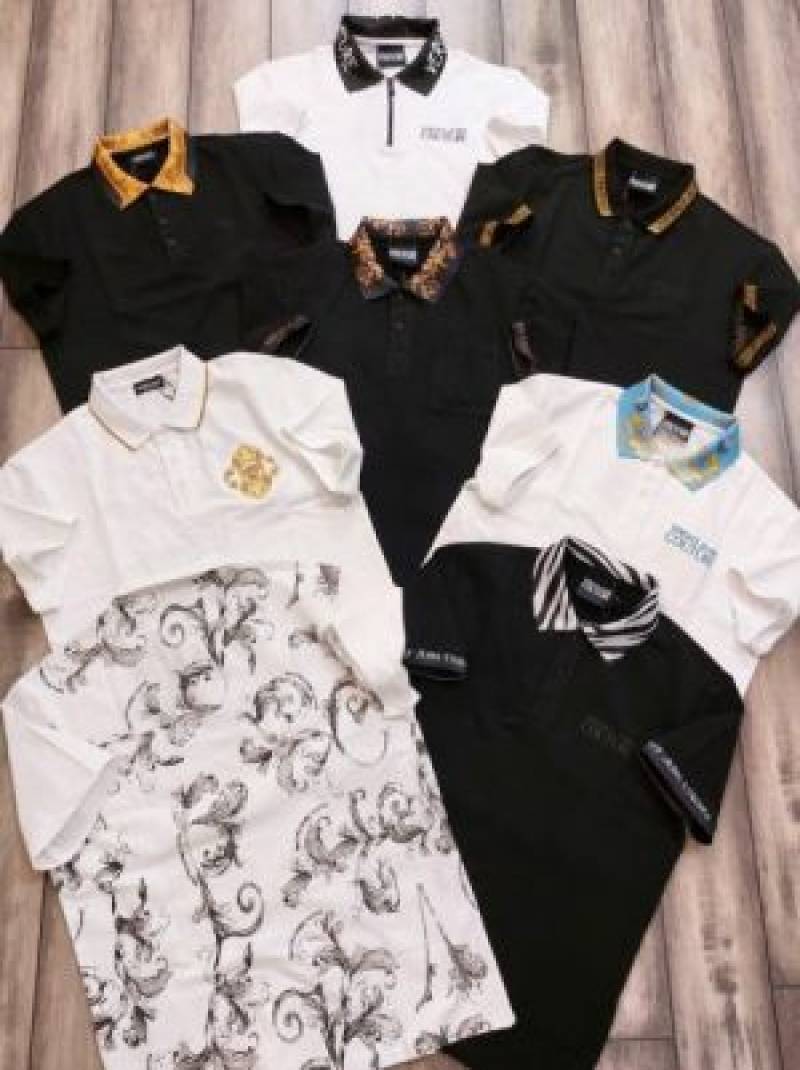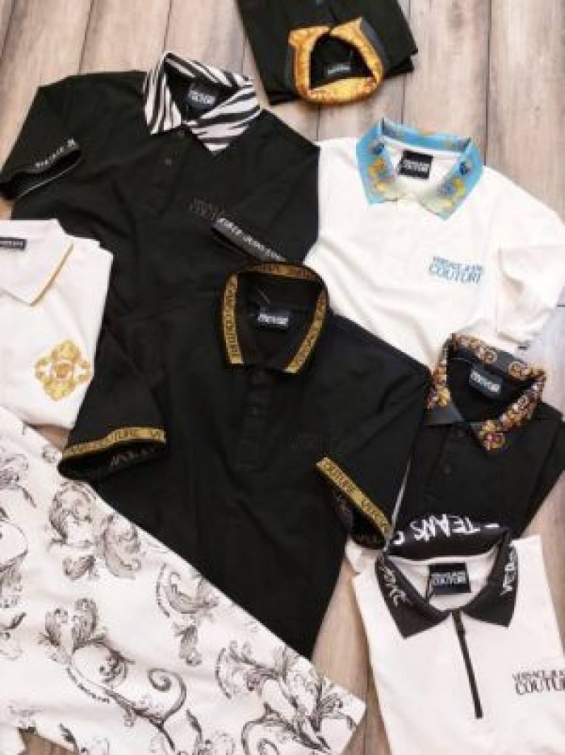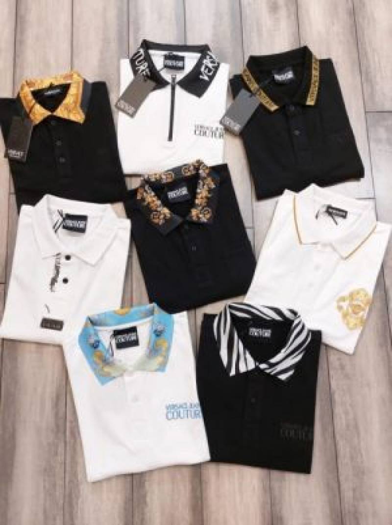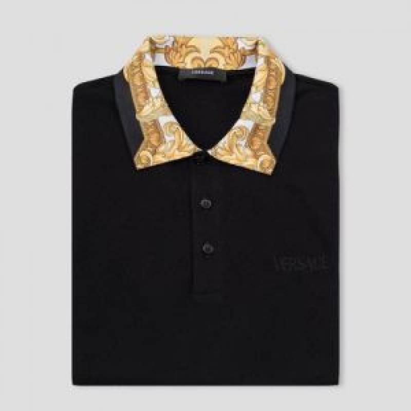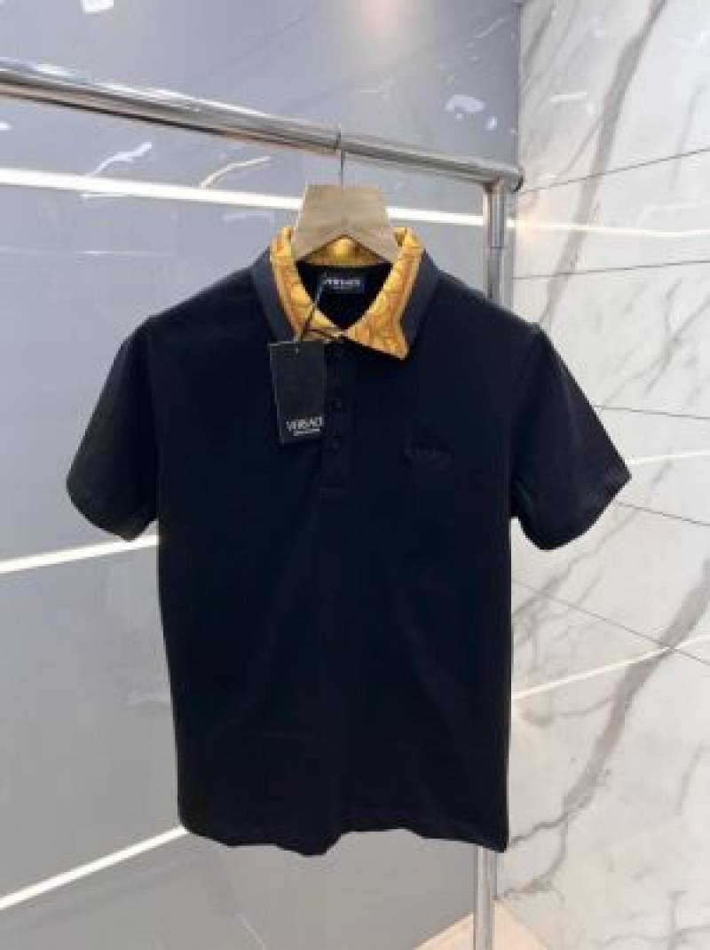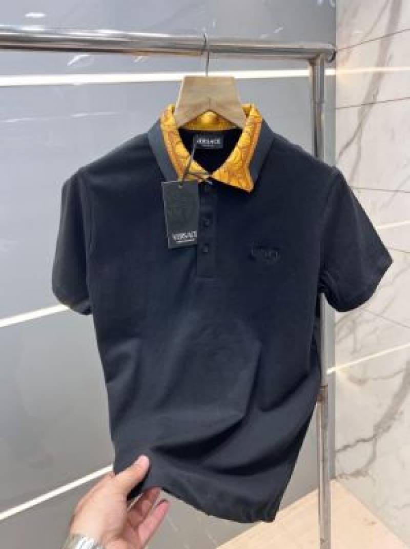 Versac e Black Premium Imported Pique Polo Tshirt with Collar Design and Embroidered Logo 2755